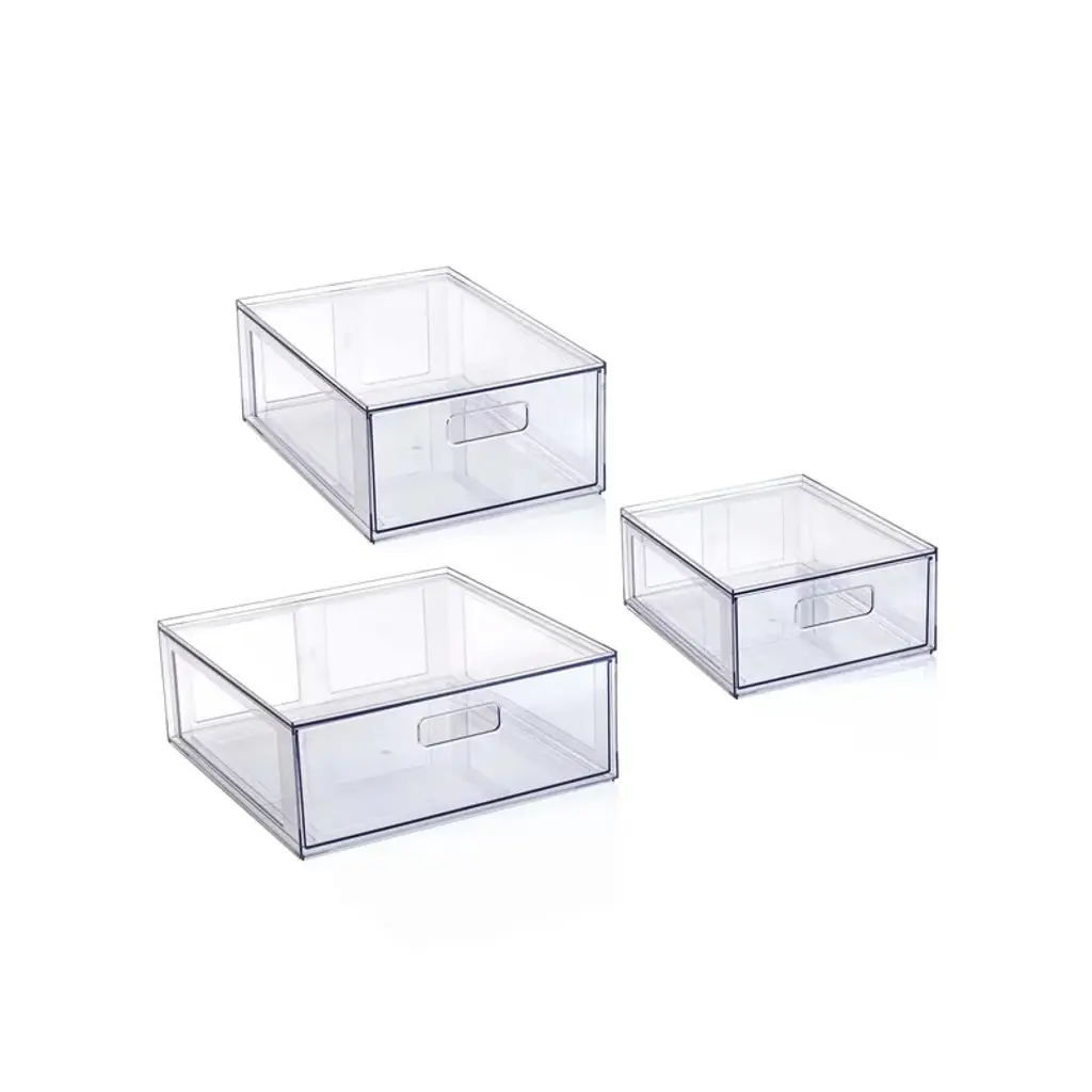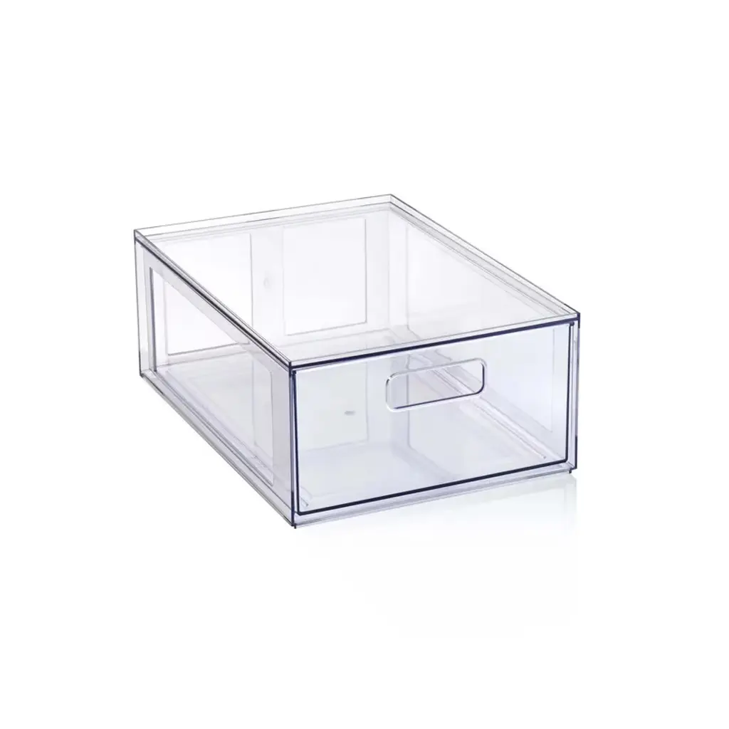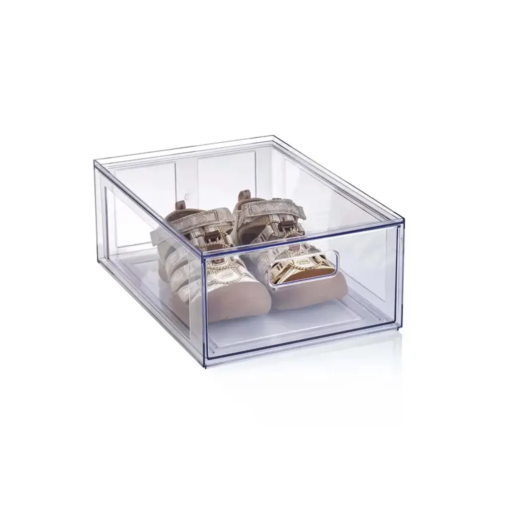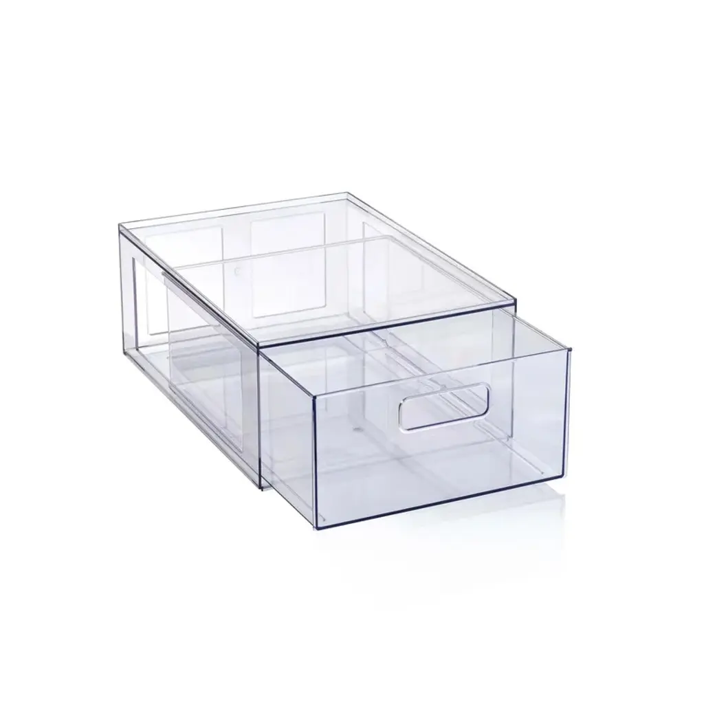 Medium Clear Drawer helps tidy up your bedroom, hallway, or entryway closets. This closet drawer designed for adults with pull-out drawer is a convenient and perfect choice for you to store your shoes, accessories, books, toys, scarves, etc. Product dimension: 14" L x 9.8" W x 5.5" H .Clear design allows you to directly see what is inside, the pull-out drawer makes it simple to grab what you need. The stackable design helps maximize space by creating vertical storage. The compact size and stacking feature also makes them great for apartments, condos, college dorm rooms, RVs, campers. For easy care and cleaning, simply wipe with a damp cloth.