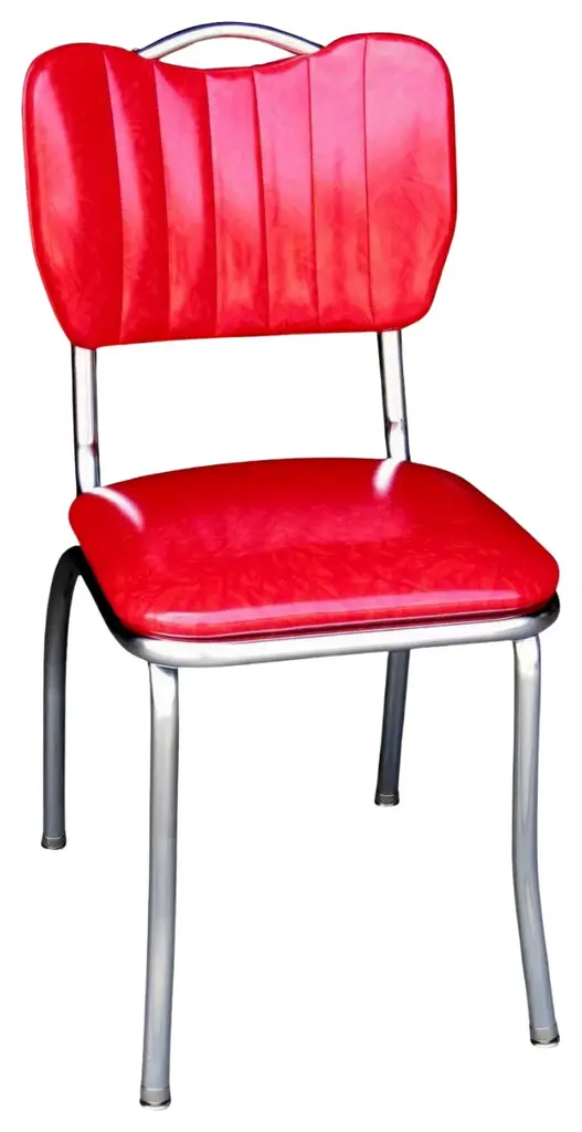 Step back in time with our extraordinary Retro Home Dining Chair, a true homage to classic design and timeless elegance. Elevate your space with this American-made retro kitchen chair, built to last while offering the perfect blend of retro flair, exceptional comfort, and quality craftsmanship. Make a bold statement and enjoy the nostalgic charm this chair brings to your home. Richardson Seating's commercial-grade dining chairs are perfect for stylish home kitchens, dining rooms, 24/7 cafés, restaurants, or bars.Classic Retro Design: Features a unique back design with single-tone, charming channeling with convenient chrome arc handleComfort Meets Durability: Made with heavy-duty 14 gauge welded steel frame in chrome finish and high-density 1" thick pulled seatReady to Use: Arrives fully assembled. Simply unpack and start enjoying your stylish new seating.Proudly Made in the USA: Commercial-grade construction, meticulously crafted with pride and precision in the USA.1 year Manufacturer's warranty for commercial or residentialManufacturer Warranty: We warrant this product to be free of any manufacturer's defect for one year from the date of purchase, assuming normal indoor use.