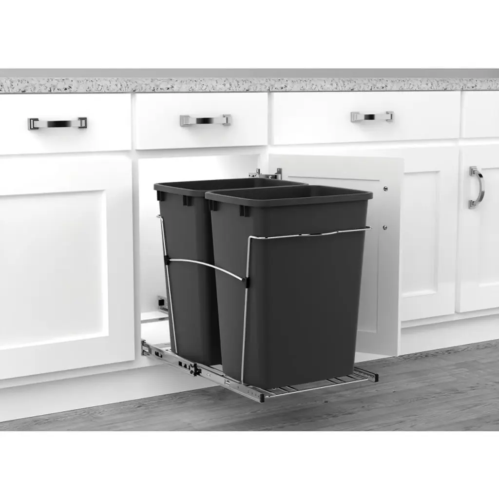Rev-a-shelf Double Pullout Trash Can For Kitchen Cabinets 35 Qt Garbage Recycling Bin On Full Extension Slides, Black, Rv-18kd-18c S