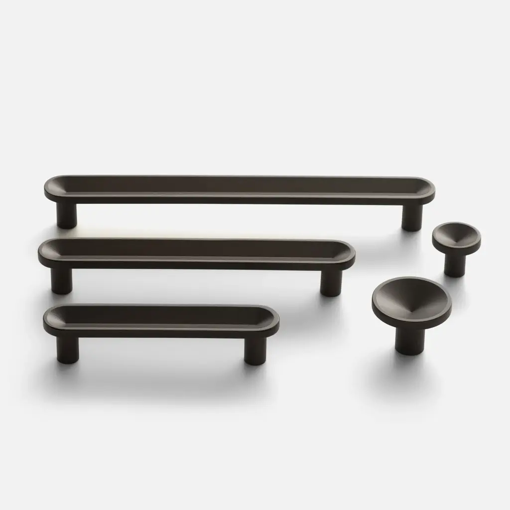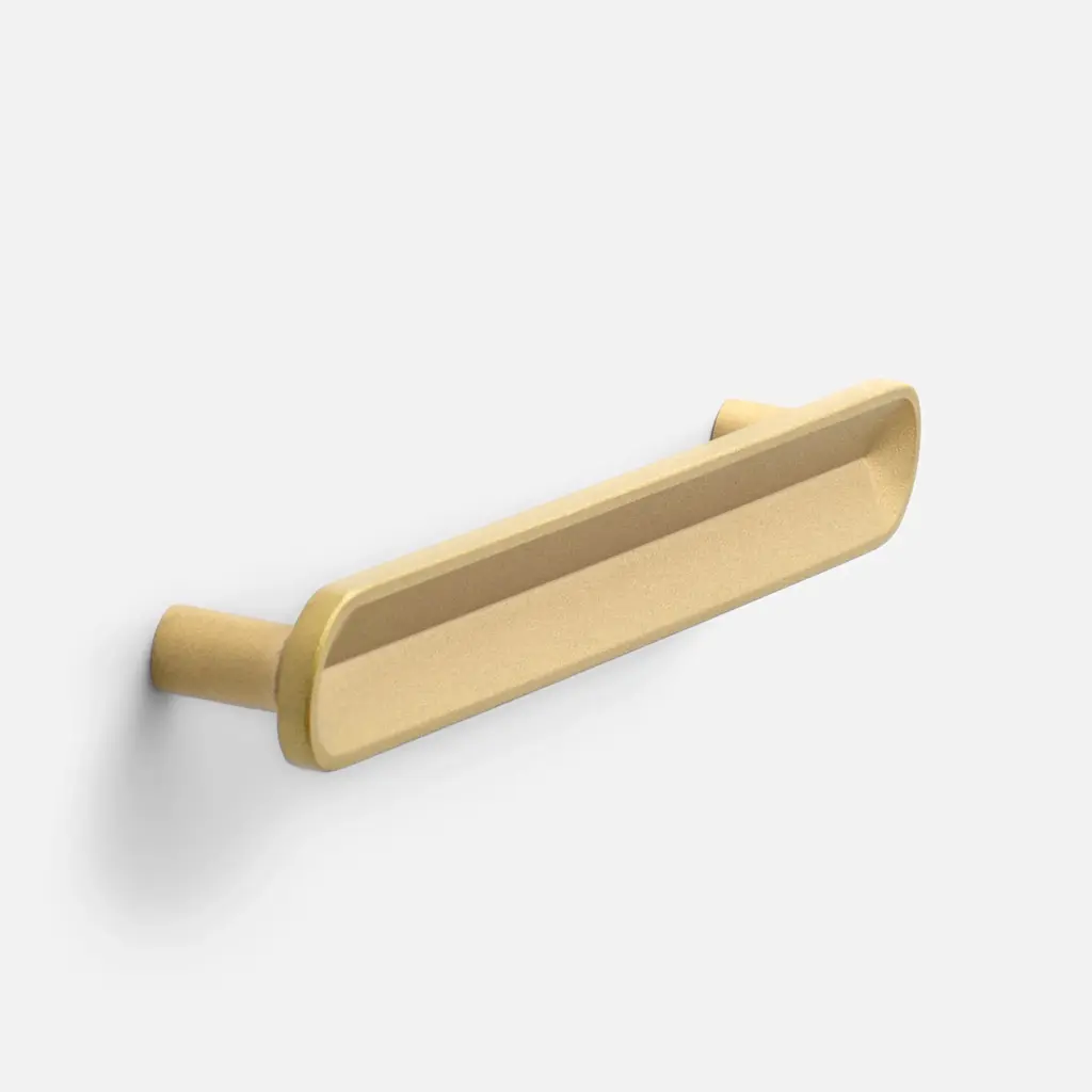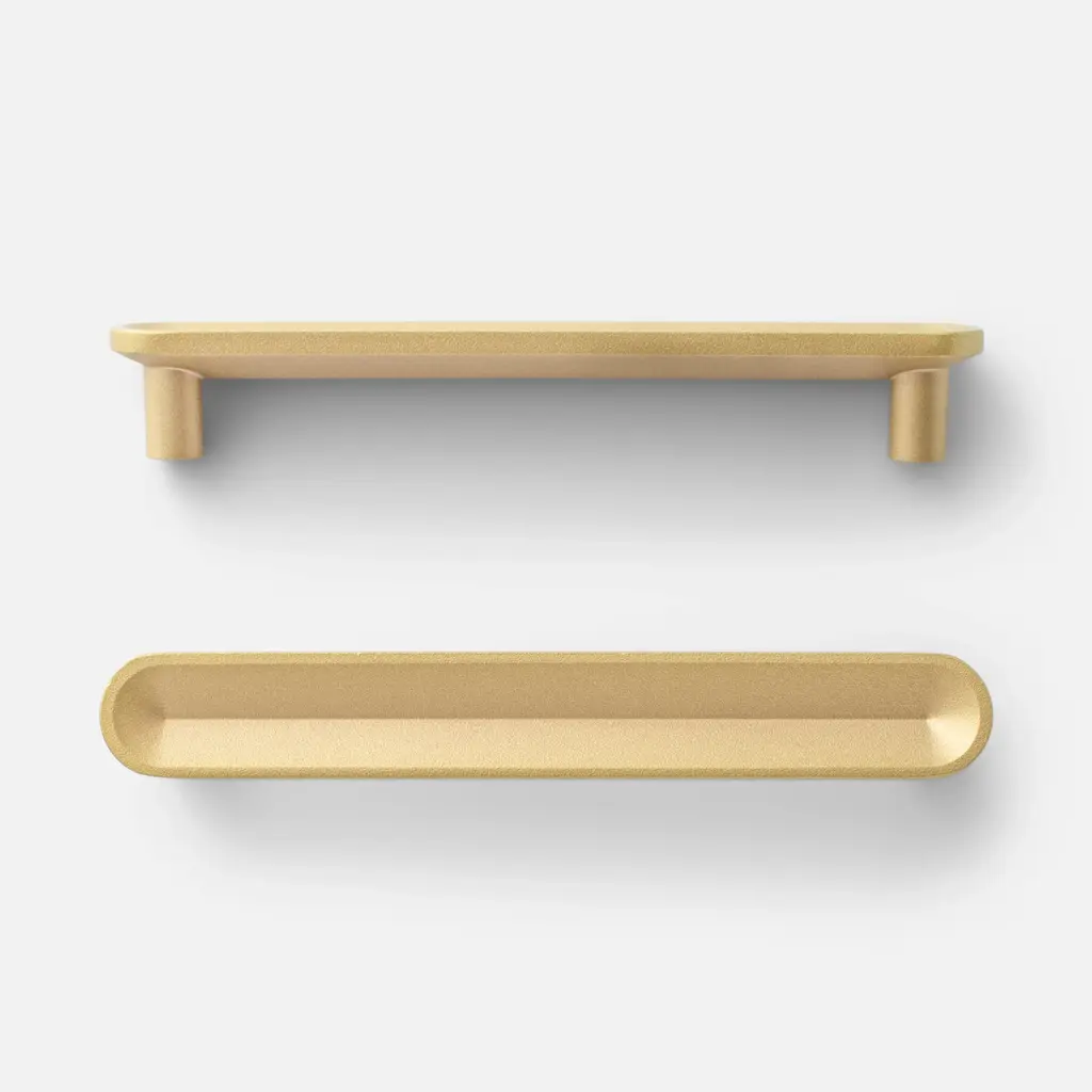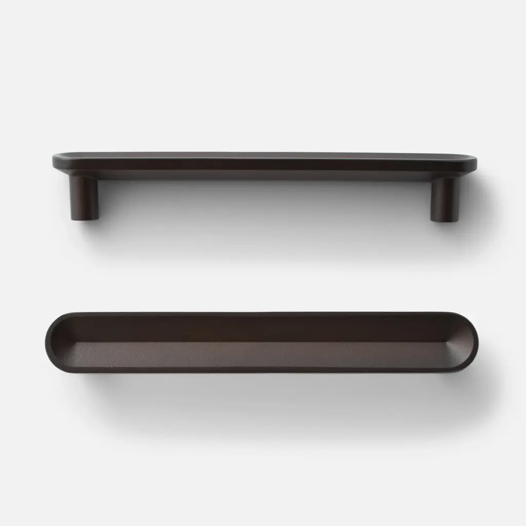 Transform your cabinet facades with the minimalist allure of the Rhone Brass Cabinet Pull. Crafted for a lifetime of everyday use, the casting process and sculptural design imbues it with tactile charm in both finish options.6" Pull - Center to Center: 6" - 1" H x 7" L x 1.1" Proj. 8" Pull - Center to Center: 8" - 1" H x 9" L x 1.1" Proj.