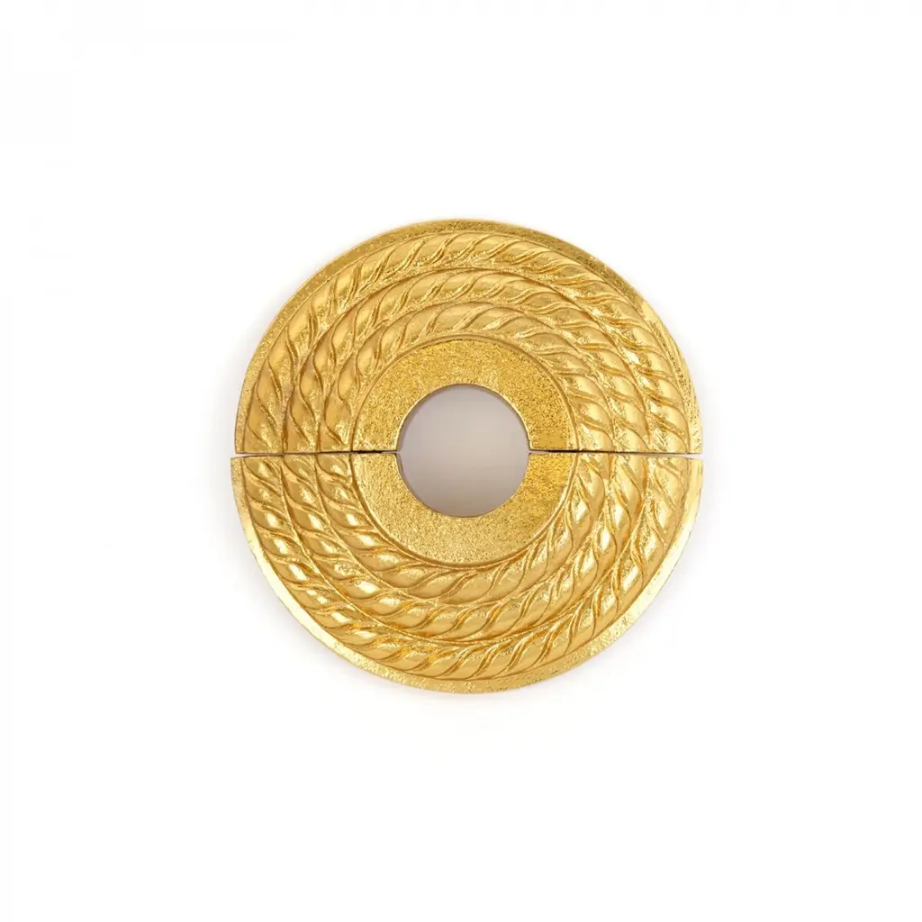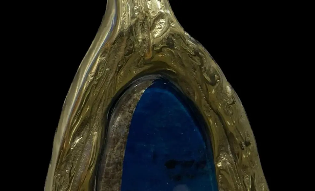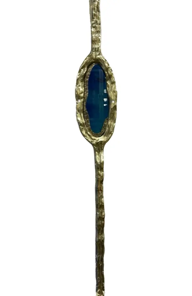 Transport your entryway through the ages with the Erissa door pull handcrafted in solid brass and artisanal glass, inspired by oceanic hues and ancient times, seamlessly melding the grandeur of bygone eras with sleek, modern design elements. This unique fusion captures the essence of history while introducing a contemporary flair, creating a doorway that serves as a timeless and sophisticated focal point for any space.Be inspired by the mesmerizing opulence of the gold jeweled architectural element. Intricately sculpted, this piece makes for a captivating work of art for your door.Please Note: The one-of-its-kind Erissa door pull may have variations in its form, texture, tonality and finish which are not imperfections but a testimony to the authentic artisanal production. Each piece is 100% unique & handcrafted, therefore, dimensions may vary slightly.