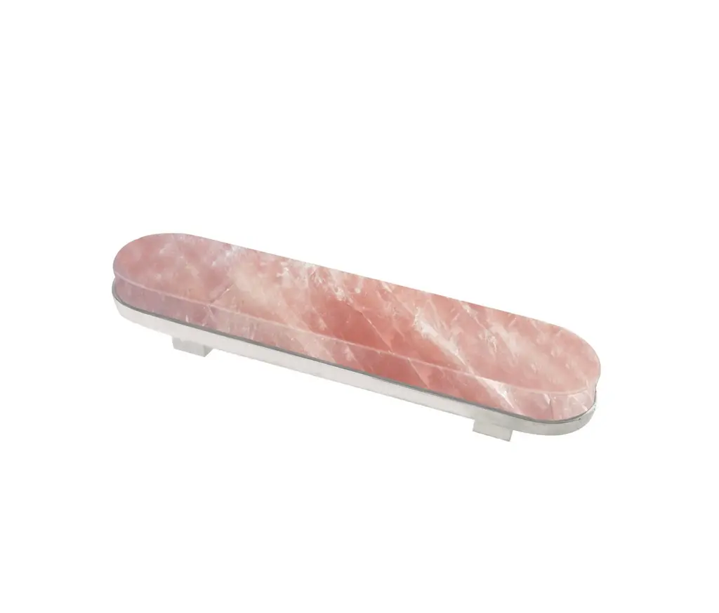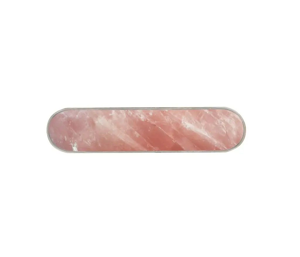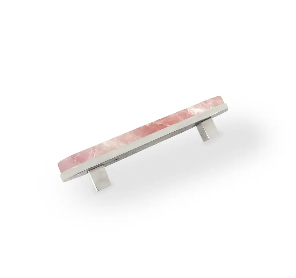 Rose rock crystal handle with nickel decoration. Created by Phoenix Gallery, NYC.Size, and finish upon request.
