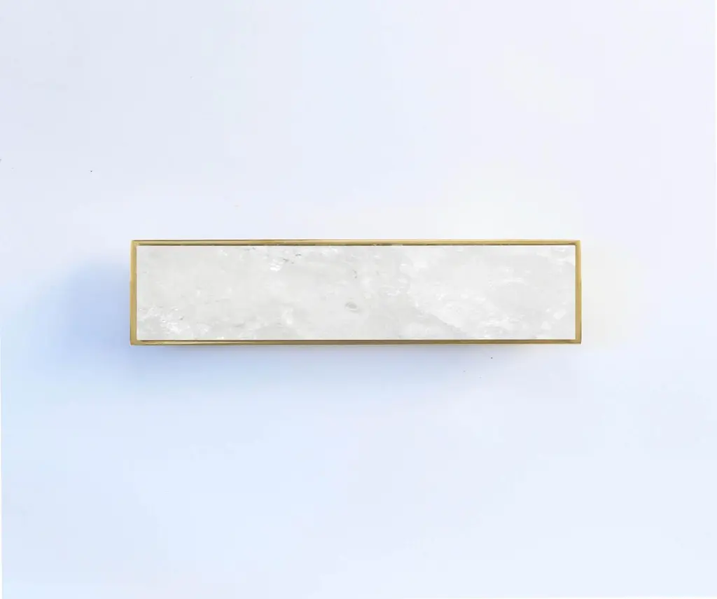 Rock crystal handle with polish brass decoration. Created by Phoenix Gallery NYC. Size, and finish upon request.