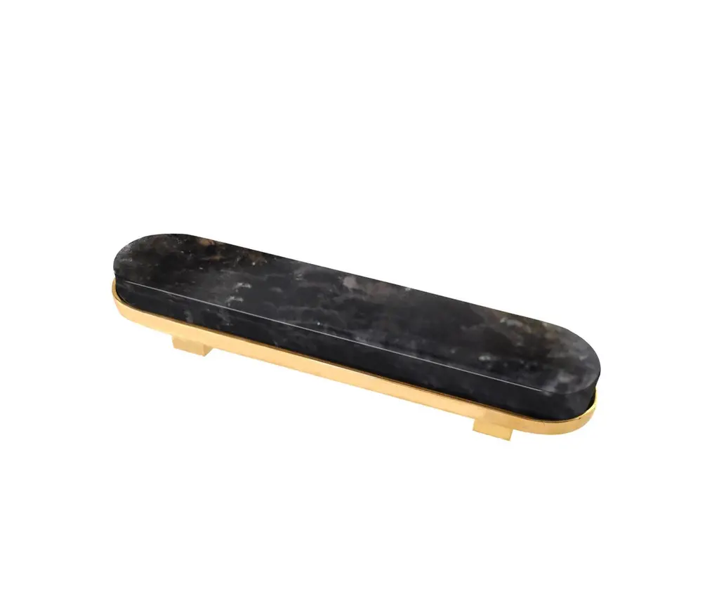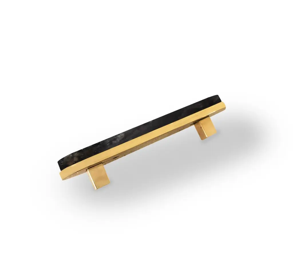Smoky rock crystal handle with polish brass decoration. Created by Phoenix Gallery NYC.Size, and finish upon request.