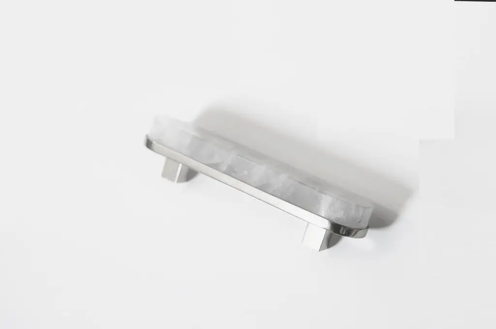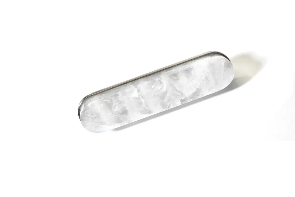 Pair of rock crystal handles with nickel decoration. Created by Phoenix Gallery NYC.Size, and finish upon request.