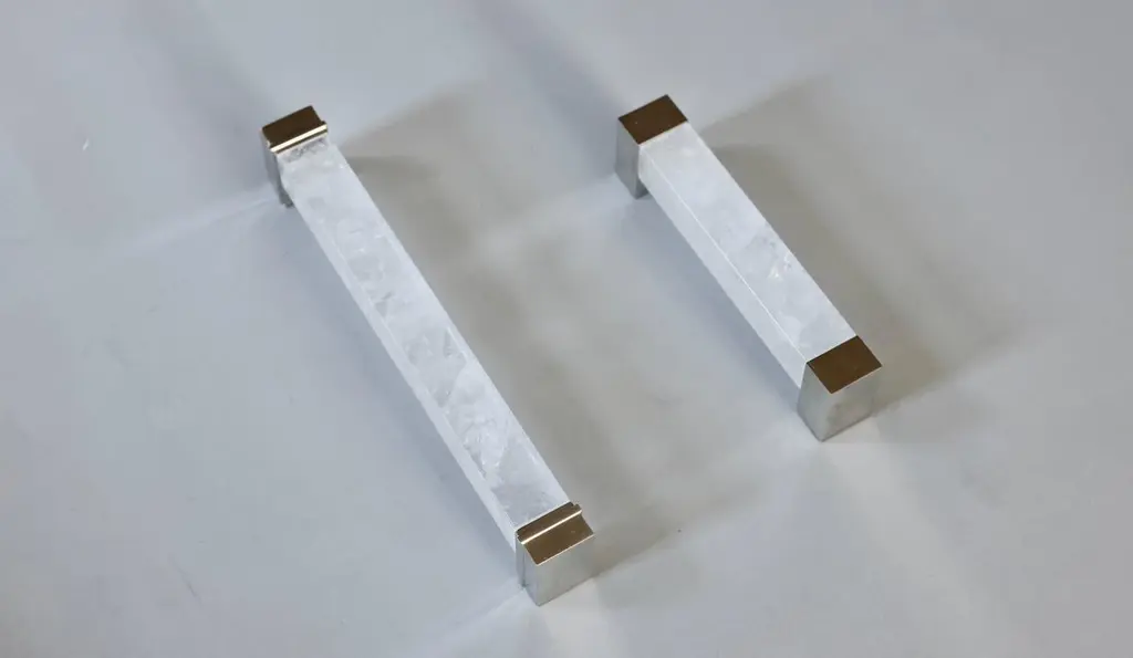 Rock Crystal Pull with polished nickel decorations Custom size and metal finish upon request.