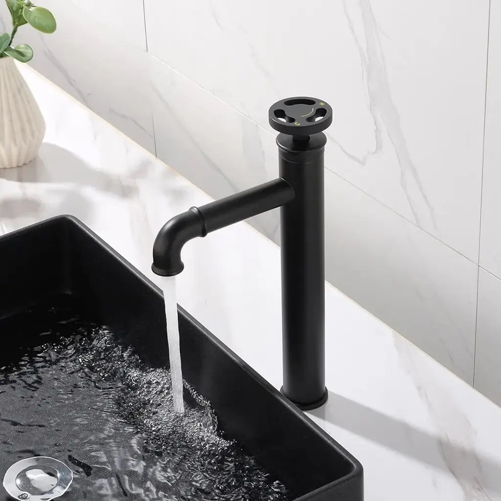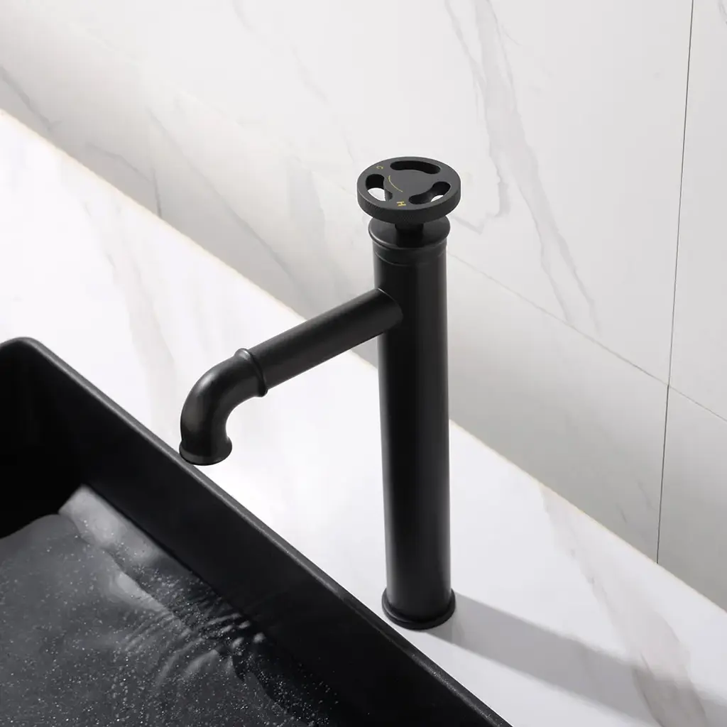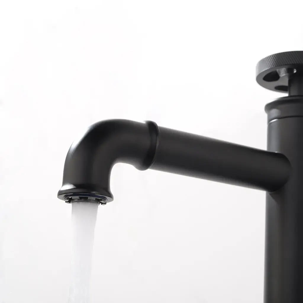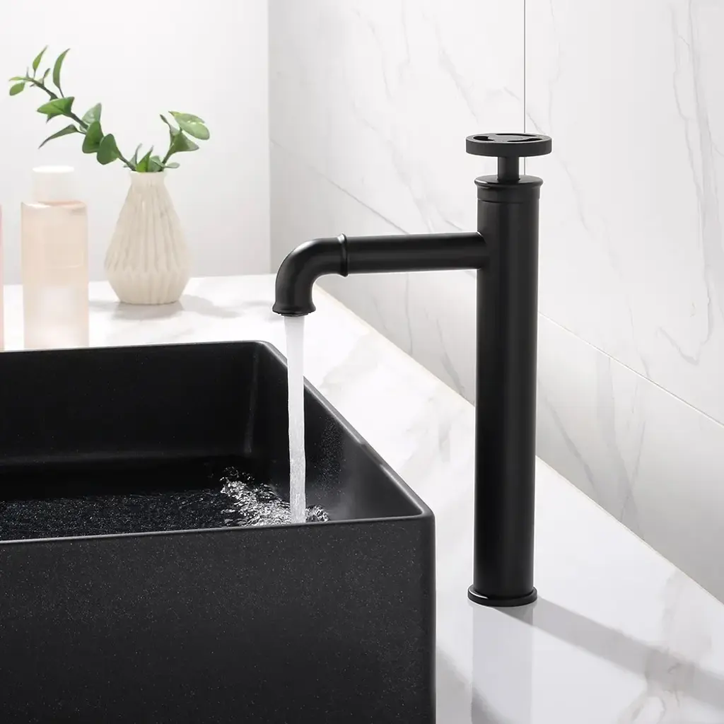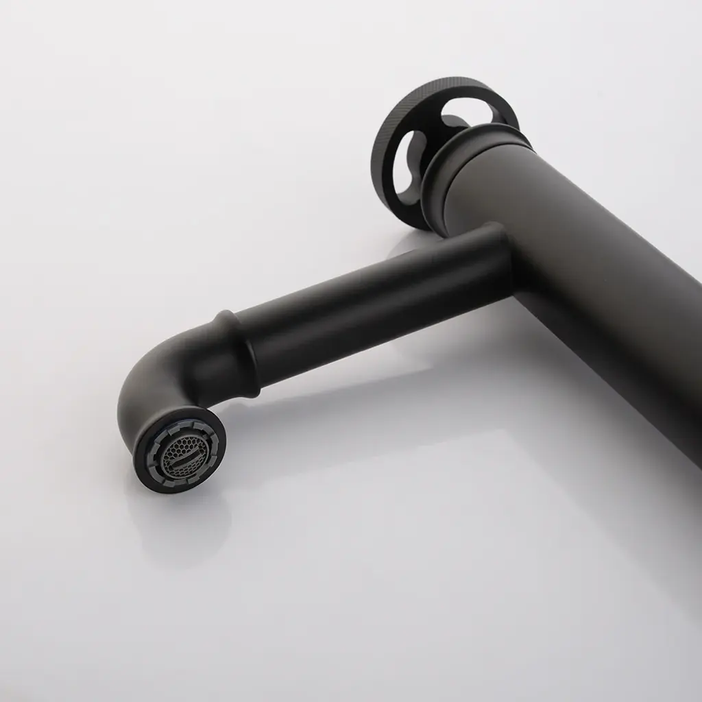Ruth Industrial Matte Black Single Hole Bathroom Vessel Sink Faucet Single Handle Brass
