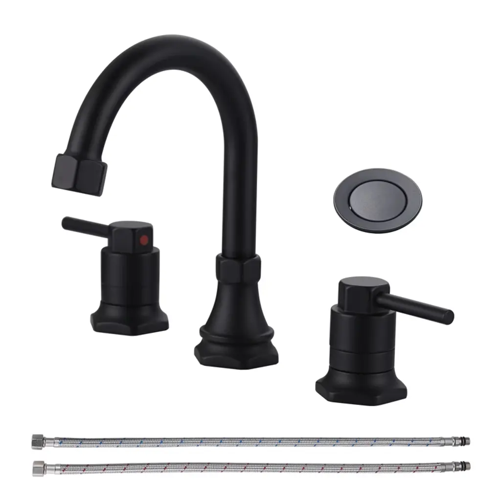 Saylortm Widespread Bathroom Faucet 3 Hole, 2-Handle Bathroom Sink Faucet With Drain Assembly