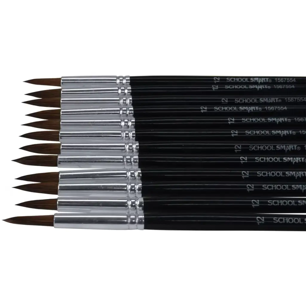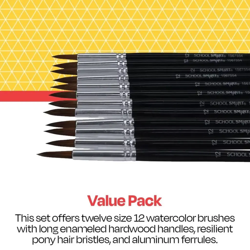 School Smart Watercolor Paint Brushes, Long Handle, Size 12, Set Of 12