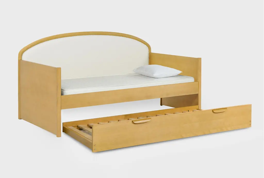 With its warm, inviting Scandinavian design, our Seren boucle upholstered daybed with trundle is a breath of fresh air in any kids space. Solid rubberwood and birch cathedral veneers lend beauty, durability and simplicity, while clean lines and curved elements bring an organic feel to the distinctive contemporary style. Crafted with exceptional quality and care, each detail is thoughtful and intentional. You'll find a variety of coordinating items that bring function, comfort and convenience to your family's life, allowing everyone to enjoy a sense of peace and ease.