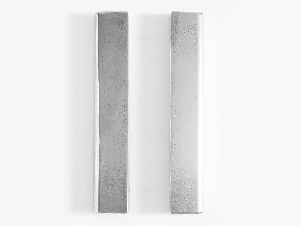 Set of 2 Aluminum Cove Handle by Henry WilsonDimensions: W 5 x D 3 x H 25 cm Materials: Aluminum Each piece is sand cast and rumbled finished. Aluminium pull handles are manufactured in small batches meaning slight variations will occur from piece to piece. Production marks may include slight pour ripples or surface pitting. It will arrive with a bright finish but will oxidise and darken over time to reveal a distinctive patina. Simply use a metal polish to restore a like-new finish. Henry Wilson's work combines a rational, democratic utility with an element of sculptural expression. There is a clear form and function in our products, but it’s important they also have feeling. We are interested in the awkward beauty that comes from something made by hand. We like to explore how imperfection can be introduced into an industrial process, to make something at scale that retains a sense of individual charm.Permanent collections and exhibitions- Museum of Applied Arts and Sciences, Sydney, Australia- Art Gallery of Western Australia, Perth, Australia- 'Sempering' XXI Triennale, MUDEC, 2016, Milan, Italy.