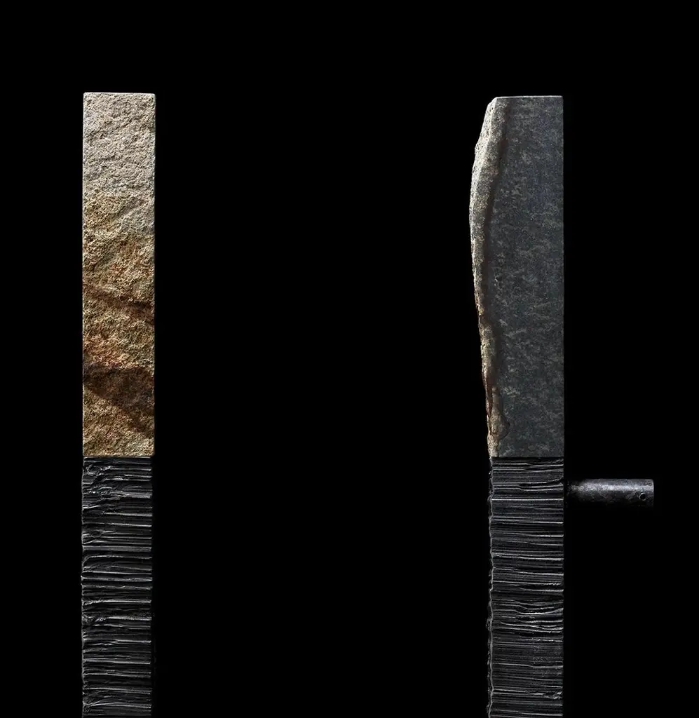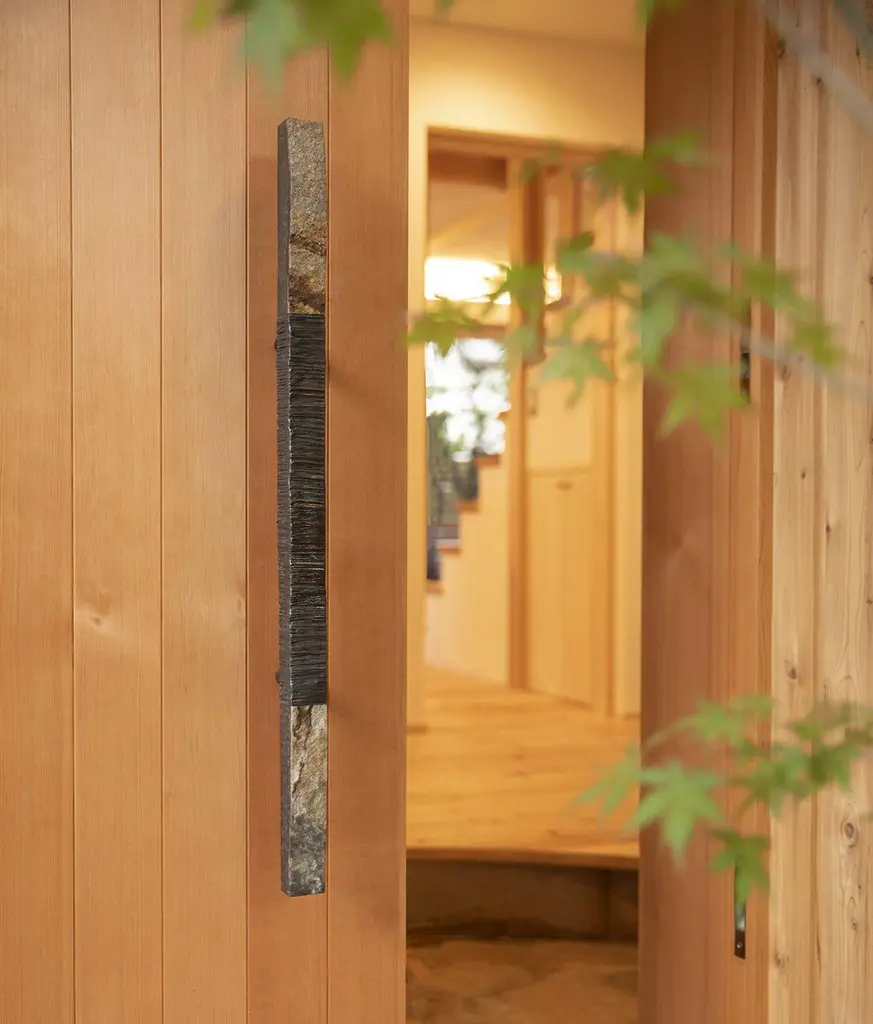Set Of 2 T3 Sculptural Door Handles by OkurayamaOne Of A Kind.Dimensions: D 9 x W 4 x H 80 cm. Materials: Daté Kan Stone and iron.The iron refined by craftsman Jun Tanaka is presented in the center providing a delicate side view with an emboldened horizontal line, and the Daté Kan Stone is attached at the top and bottom with its striking presence. Surely, guests will be amazed when this impressive sculptural door handle is attached to the entrance of a residence or an accommodation facility.At Okurayama Studio, the highly skilled staff handles the entire process of quarrying, processing, and shaping our Daté Kan Stone, which is internationally renowned for its unique appearance.We deliver the strength and beauty of Daté Kan Stone to the world in a variety of forms of art and design sculptural pieces.