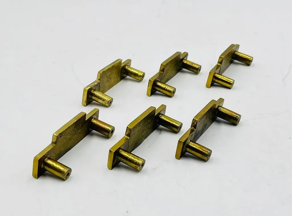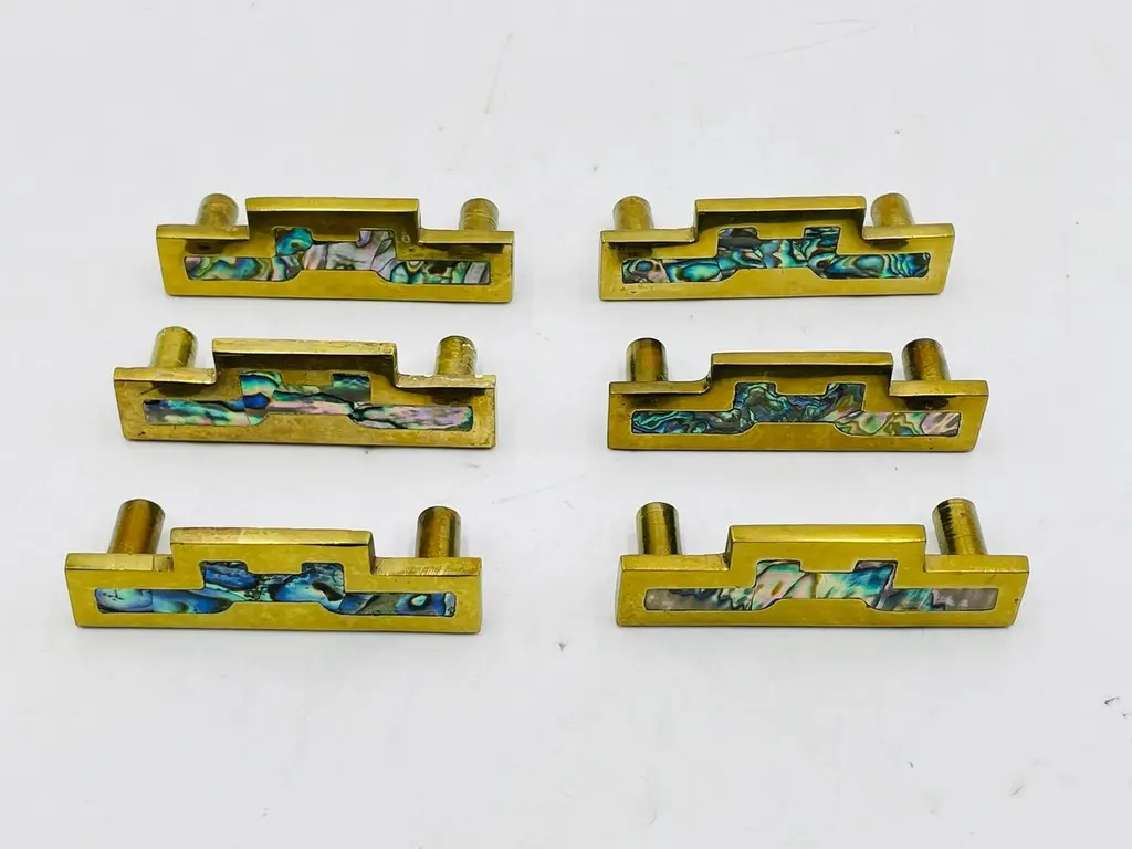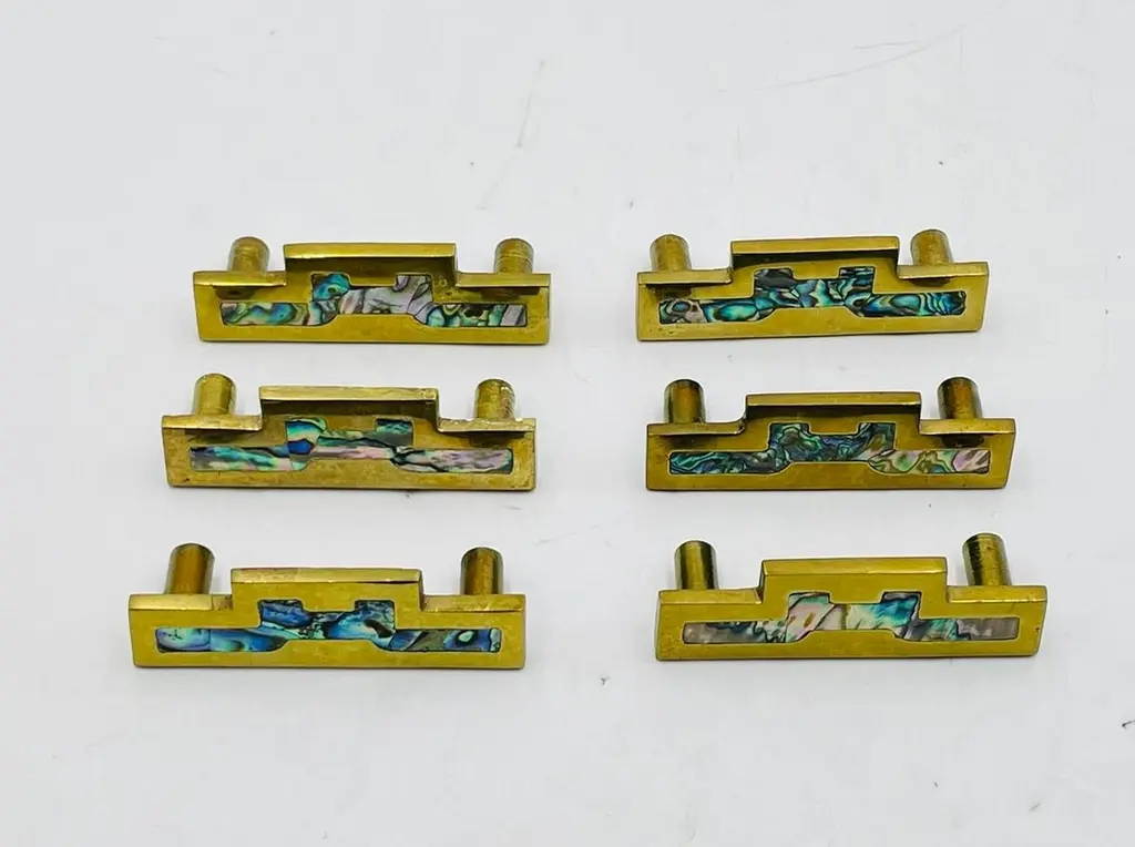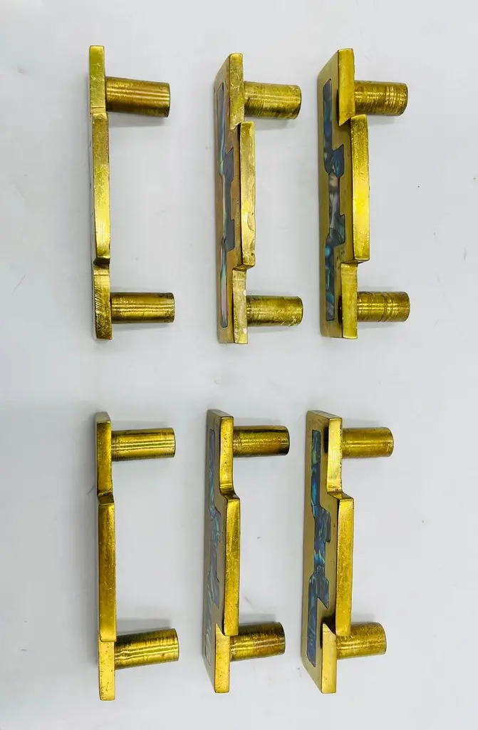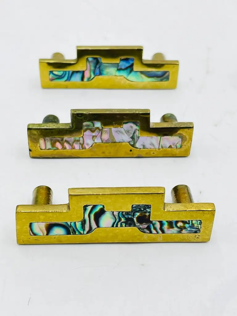 Set Of 6 Cabinet Pulls In Brass & Abalone Shell Inlay By Peñoles, Mexico 1950s