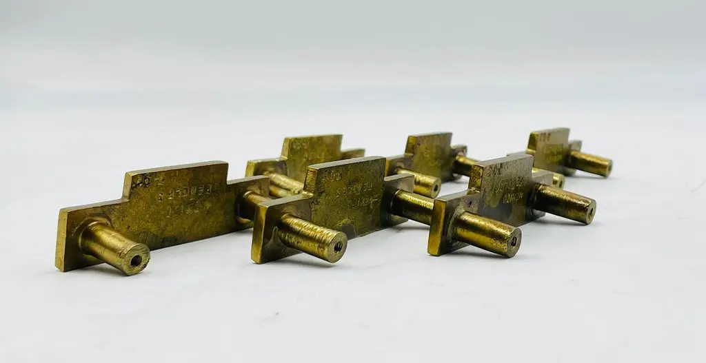 Enhance the elegance and uniqueness of your cabinets with this exquisite Set of 6 Cabinet Pulls in Solid Brass & Abalone Shell Inlay by Peñoles.The pieces were designed and manufactured in the 1950's in Mexico Distrito Federal by Peñoles. Each pull features a stunning combination of solid brass and vibrant abalone shell inlay, creating a luxurious and eye-catching design.The fusion of traditional craftsmanship and modern aesthetics make these pulls a truly one-of-a-kind addition to your home decor. Each piece is marked; Mexico D.F. Peñoles, J93.We have 3 sets of 6 in total.Measurements: 3 3/8 inches wide x 1 inches high x 1 inches deep.