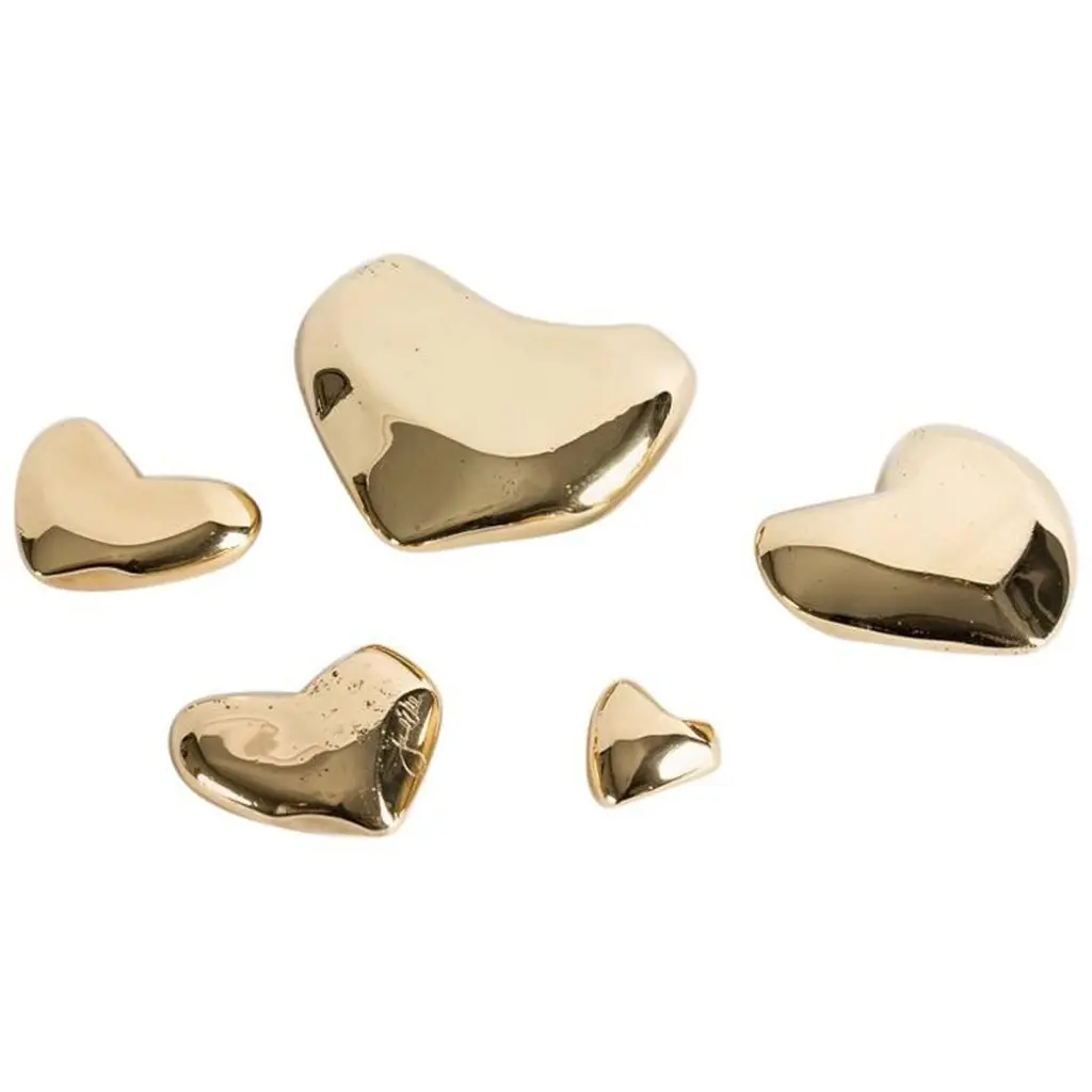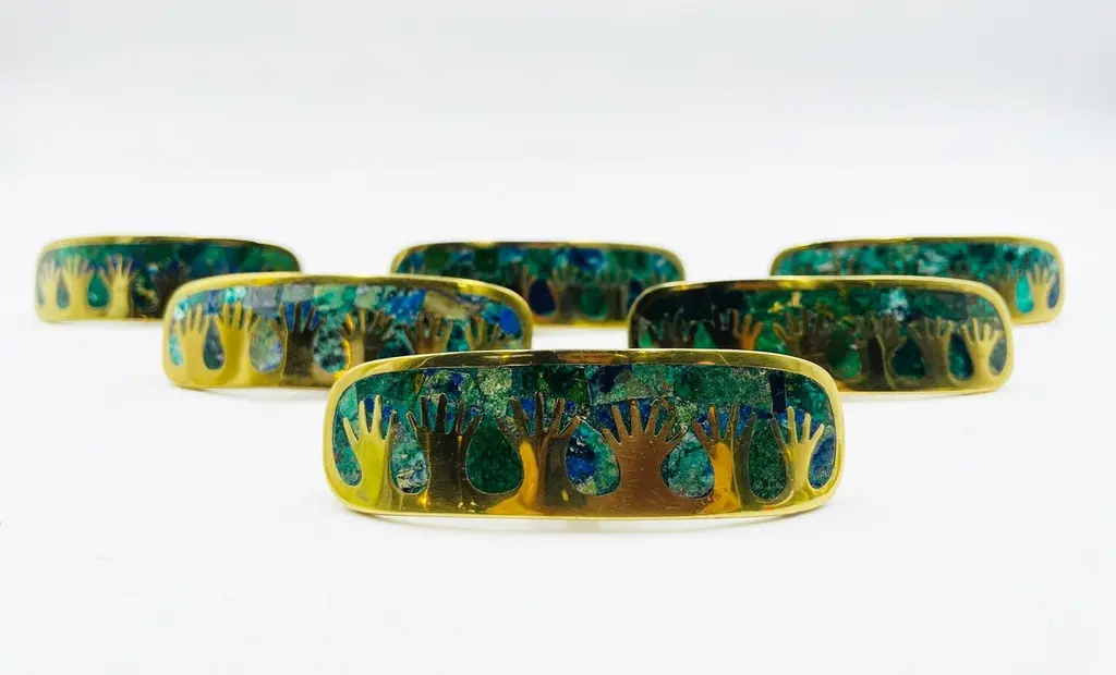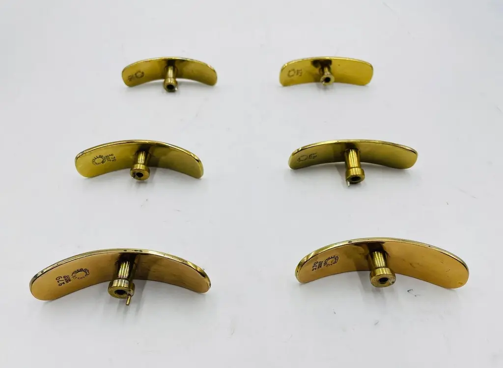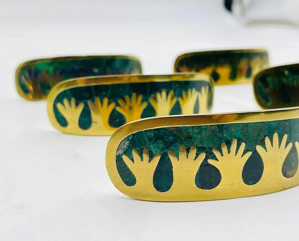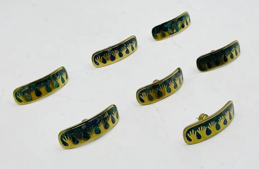Set Of Six Cabinet Pulls In Brass & Stone Inlay By Los Castillo, Mexico 1950's