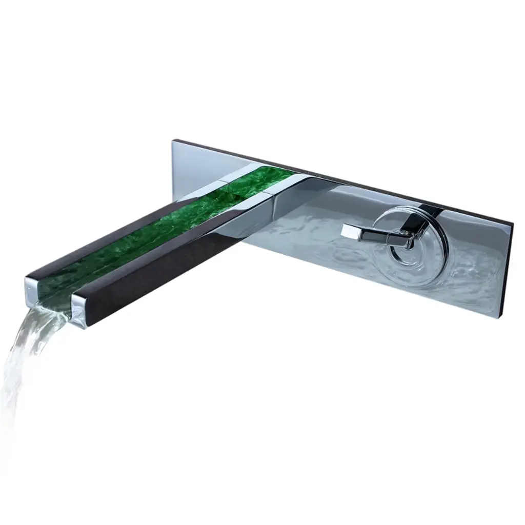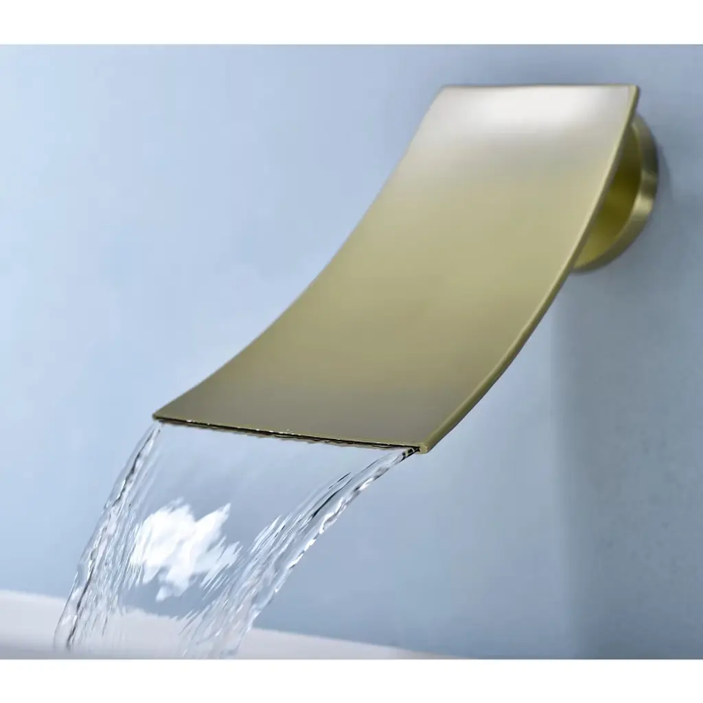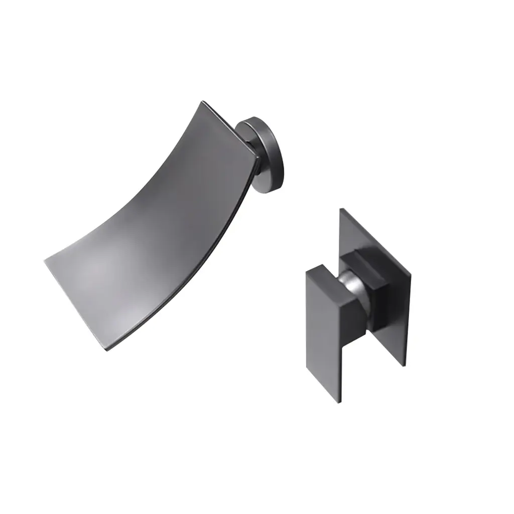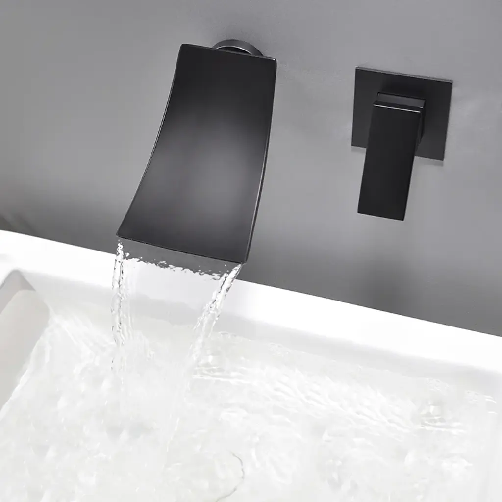Joining striking modern design with a soothing waterfall, this wall mounted waterfall spout bathroom sink faucet makes for a dazzling addition. It features a single handle with straight, crisp lines for adjusting water flow and temperature easily. The cutting edge of modern design on spout body manifests the beauty of curve and geometry, this sleek faucet will add a touch of style and sophistication to any bathroom.