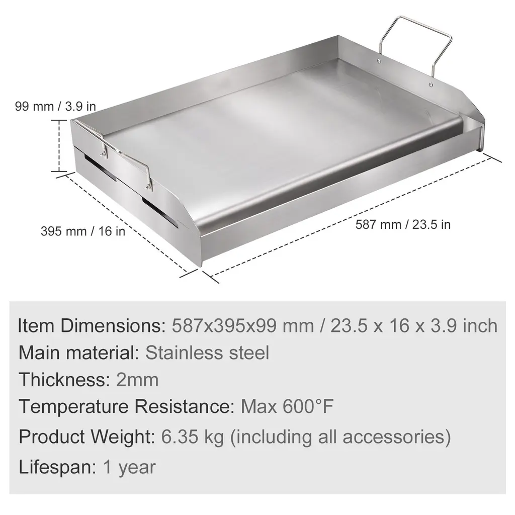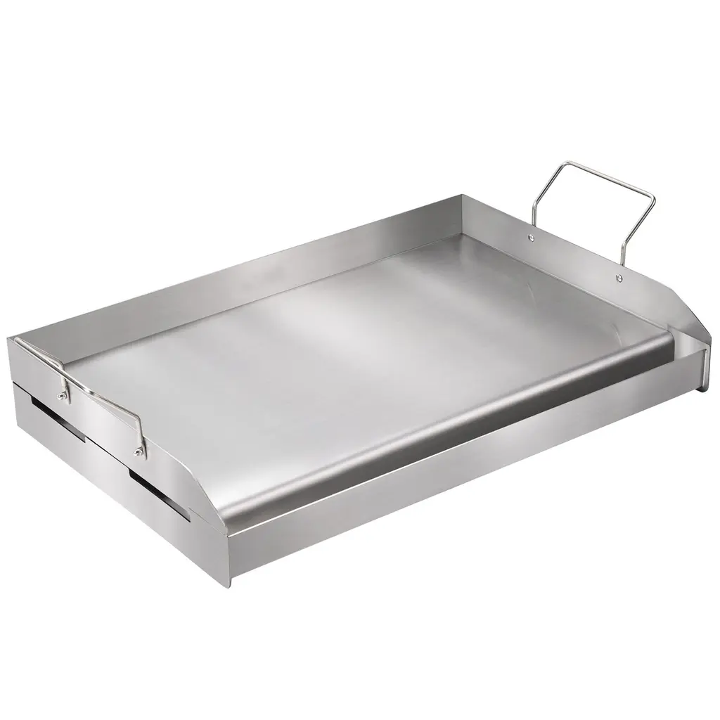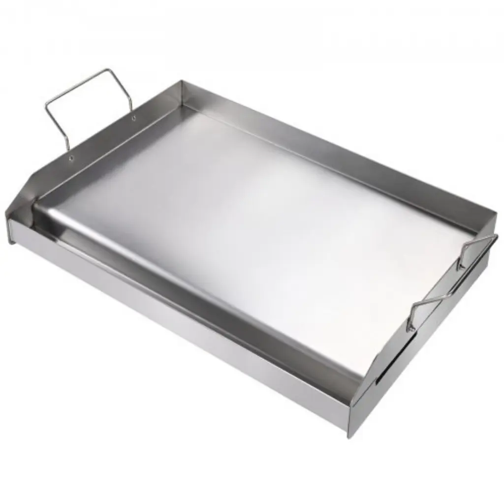 Silver Stainless Steel Rectangular Double Burner Griddle Pan With Non-Stick Surface And 2 Handles - 23.5 X 16 X 3.9 Inch - Silver