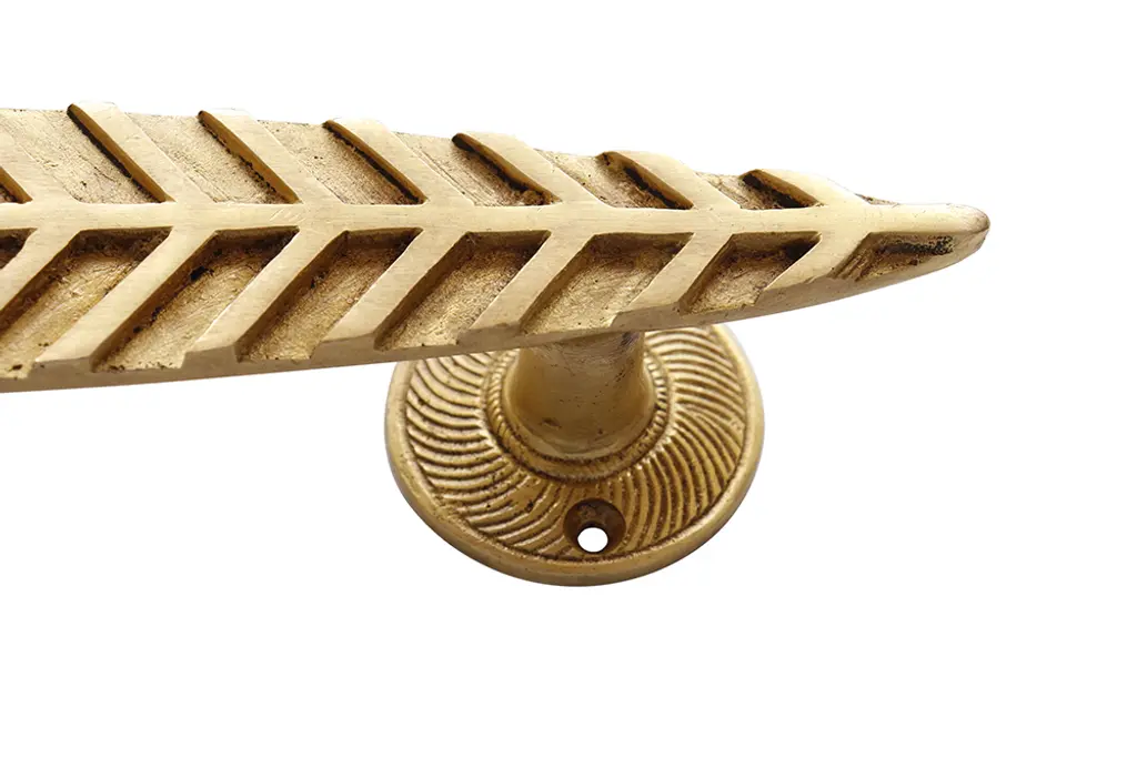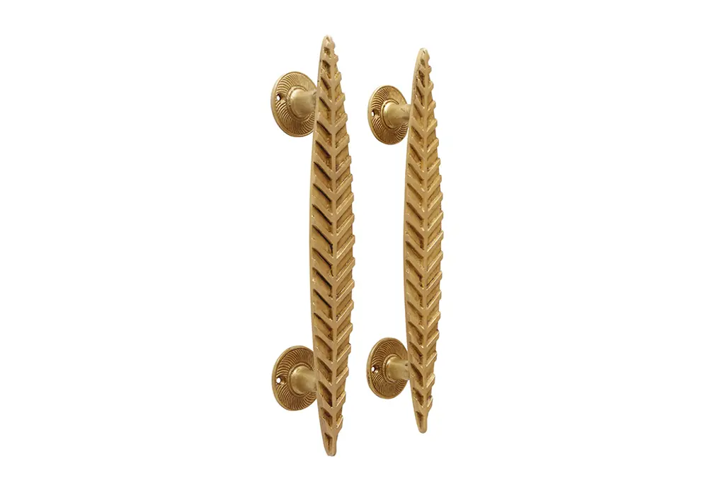Simple Feather Brass Door Handles, Pair