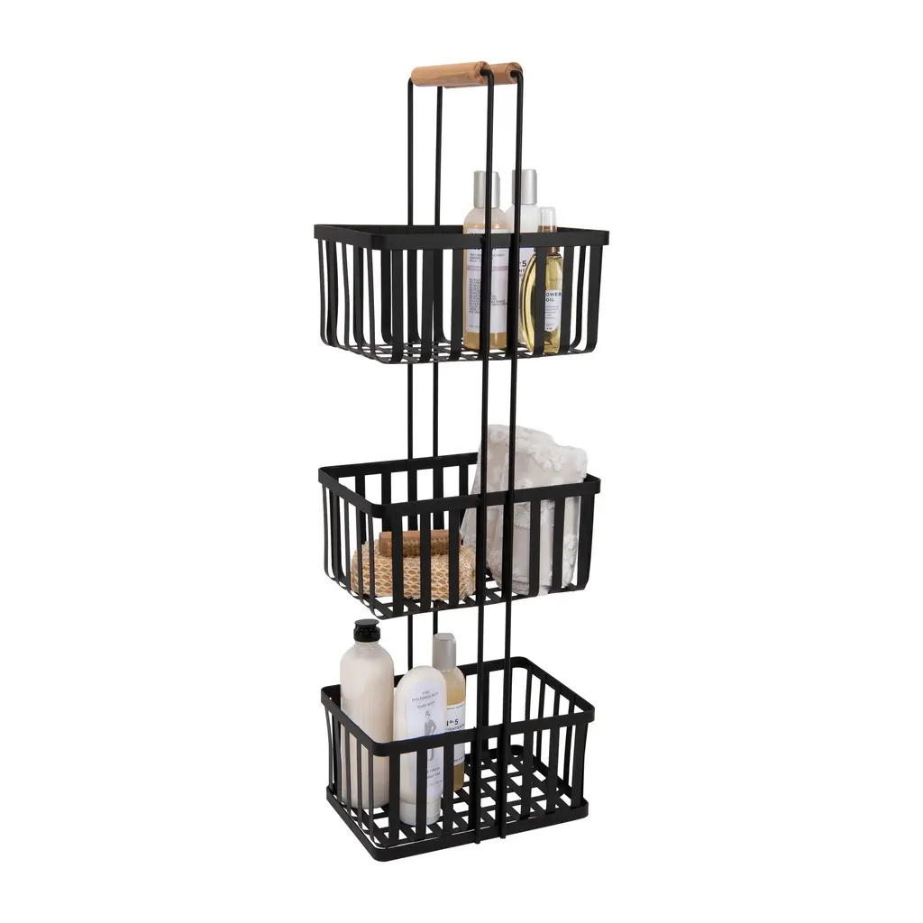 Simplify 3 Tier Metal Spa Tower With Bamboo Handles In Black - 10.43 X 7.09 X 31.69 - 10.43 X 7.09 X 31.69 - Black