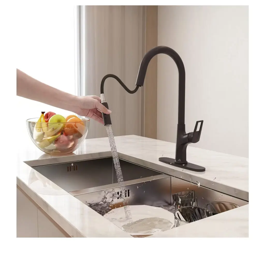 Fitting for various kitchen designs, the CASAINC Pull-Out kitchen faucet with a single handle has a timeless look. The spout can be rotated 360 degrees smoothly to allow kitchen tasks to be done with ease. With three colors to choose from, the spot-resistant finish will add elegance and charm to your kitchen.