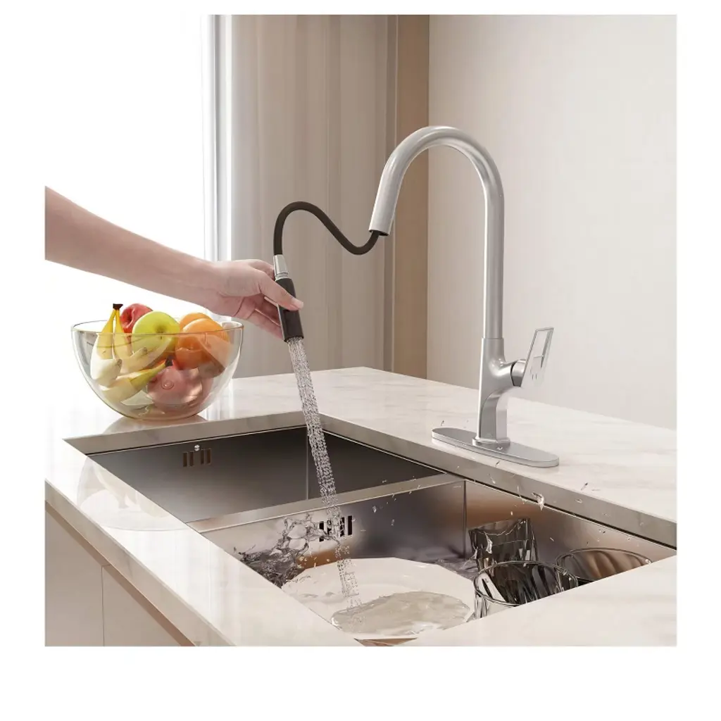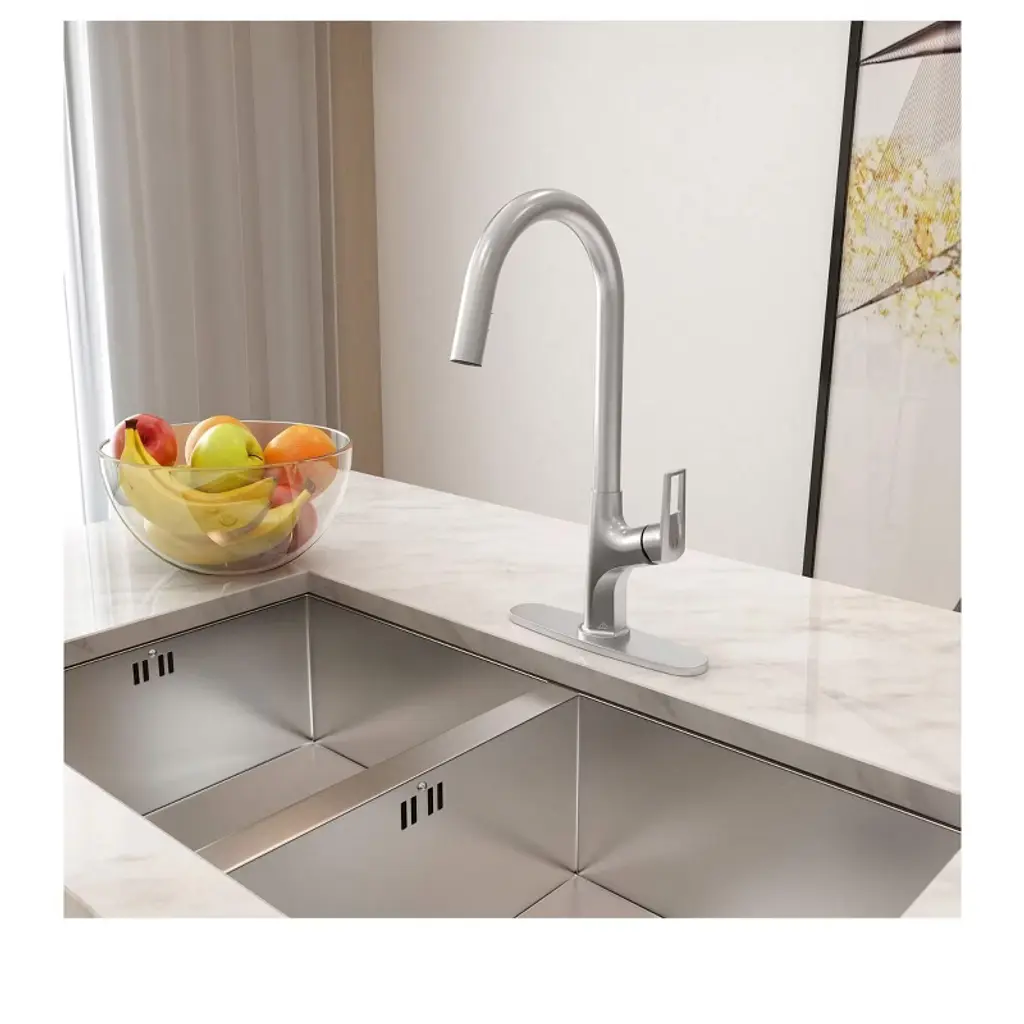 Fitting for various kitchen designs, the CASAINC Pull-Out kitchen faucet with a single handle has a timeless look. The spout can be rotated 360 degrees smoothly to allow kitchen tasks to be done with ease. With three colors to choose from, the spot-resistant finish will add elegance and charm to your kitchen.