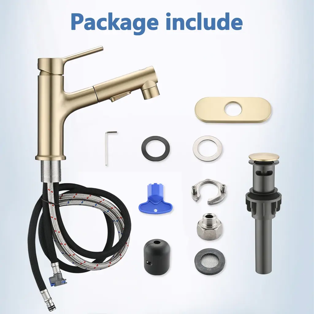 Product FeaturesFlexible Pull-out Sprayer: The Spout can be pulled out and the longer hose reaches beyond the sink adds great convenience of washing. You can use the spray head to wash hair without taking off clothes in bathroom. It also perfect for washing fruits, vegetables and other delicate foods or the filling of pots and pans in kitchen.Modern Square Design:Single handle design, flexible pull-out sprayer, easy to control of hot and cold water. This pull-down basin faucet adds a clean sleek look to your bathroom sink.Eye-catching Appearance:This faucet has a unique square look and ergonomic handle design. The body is very robust and remains shiny, insensitive to fingerprints and scratches.3 Function Spray Settings: (Bubbles/ Sprinkles/ Mouthwash). This bathroom sink tap perfectly combines an elegant Pull-out and 360° swivel design with exceptional ergonomics. The appearance is simple and generous, which will add elegance to your bathroom and kitchen.DetailsMaterial:Stainless SteelMounting / Installation Type:Single-HoleHandle(s) Included:YesDrain Assembly Included:YesDeck Plate Included:YesMaximum Flow Rate:1.2Aerator Included:YesSpout/Faucet Height - Top to Bottom:3Spout Reach - Front to Back:6.3Drain Type:Pop-Up;With OverflowValve Included:Yes