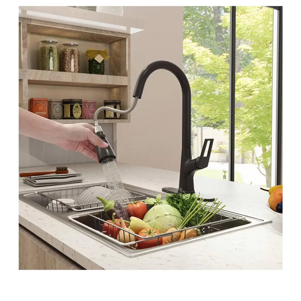 Fitting for various kitchen designs, the CASAINC Pull-Out kitchen faucet with a single handle has a timeless look. The spout can be rotated 360 degrees smoothly to allow kitchen tasks to be done with ease. With four colors to choose from, the spot-resistant finish will add elegance and charm to your kitchen.