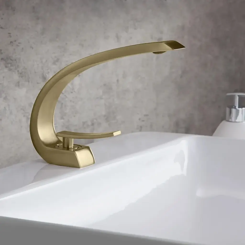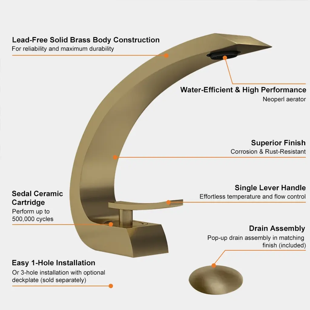 For a touch of artistic appeal and taste, this modern bathroom 1-hole sink faucet is second to none. Boasting a curvaceous arc design with clean lines and smoothly rounded edges, this unique faucet will add a fresh, new look with contemporary appeal to your bathroom. With a flat handle, it offers easy, precise control on hot and cold water flow. Made of solid brass construction and plated in premium finish, it resists corrosion and tarnishing for an everlasting sheen and beauty. A captivating addition that takes your bathroom to the next level.