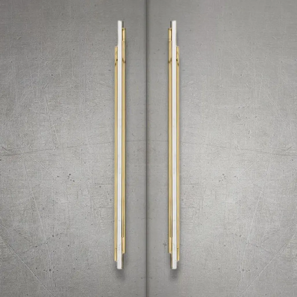 Skyline Door Pull - Handcrafted Polished Brass & Carrara Marble - Pullcast