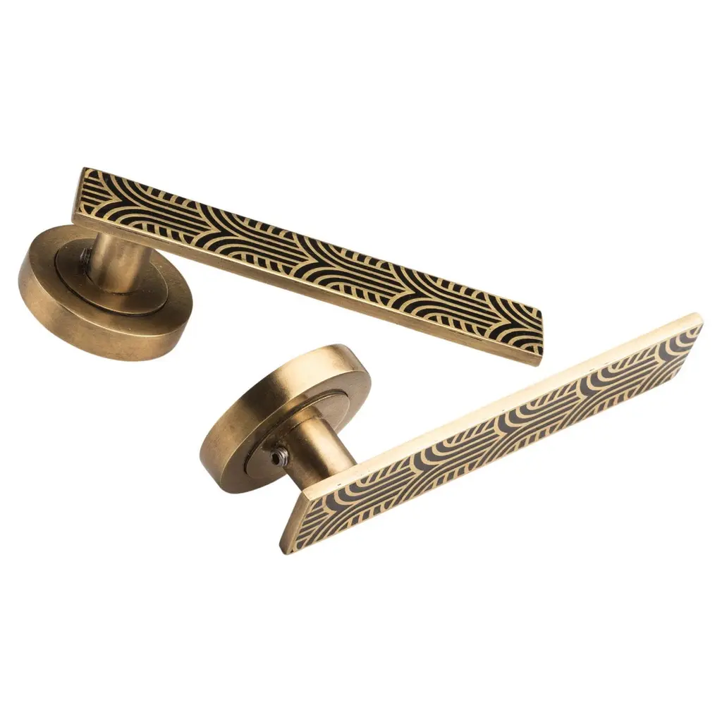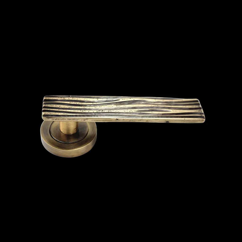 Solid Brass Lever Handle With Asymmetrical Engravings