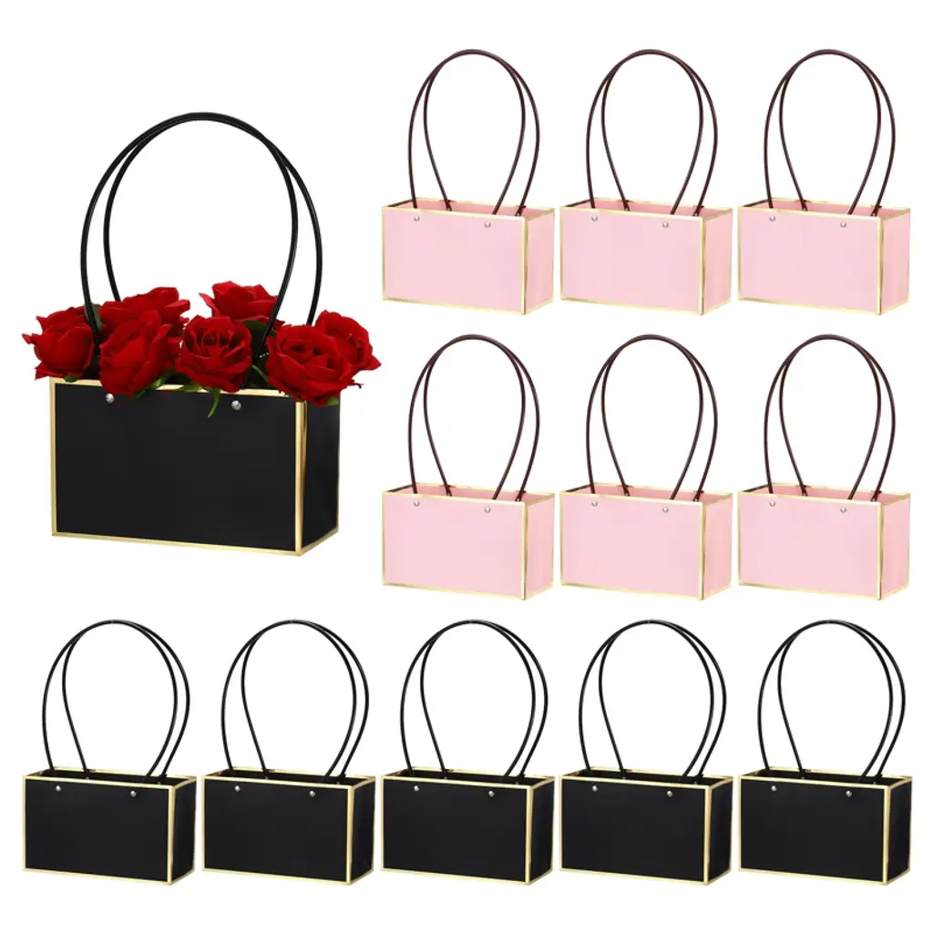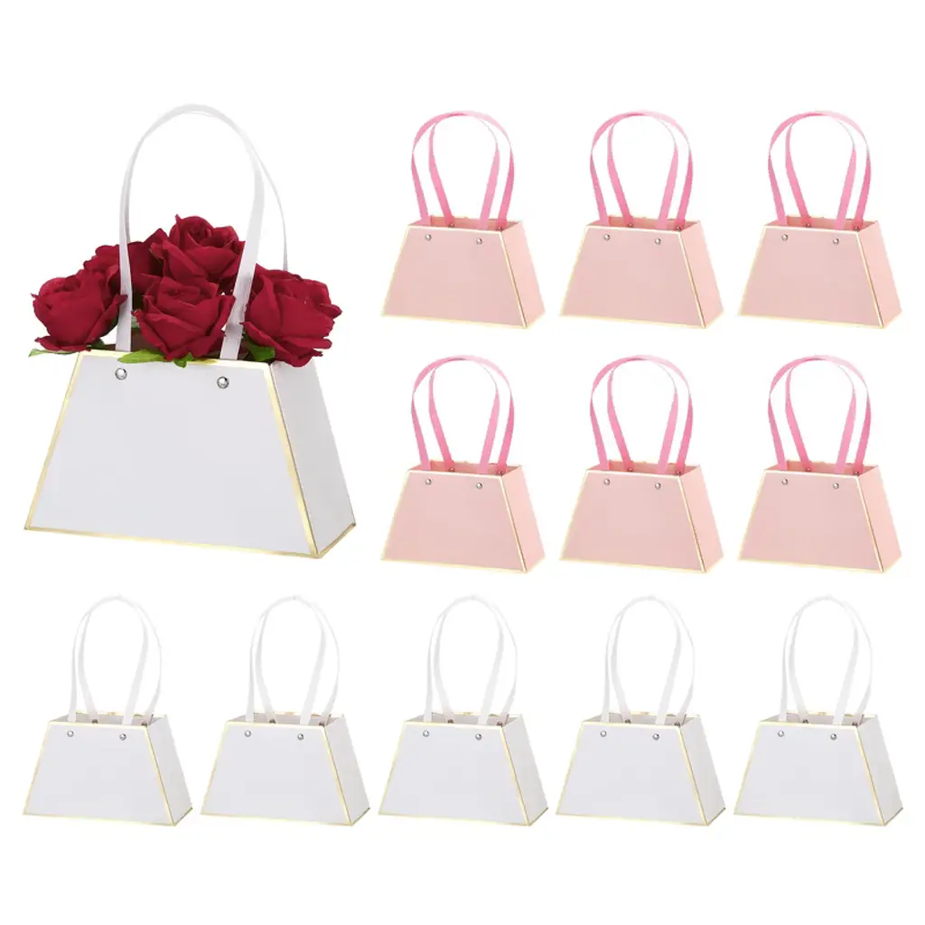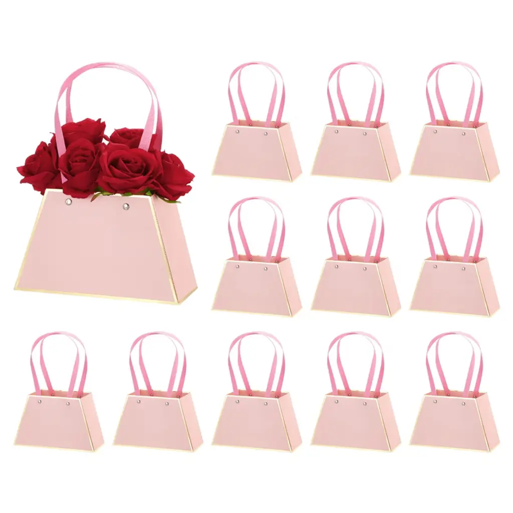 Sparkle And Bash 12 Pack Small Gift Bags With Handles For Candles, Mini Party Favors For Mothers Day, 3 Assorted Pink Designs (5x5x3 In)