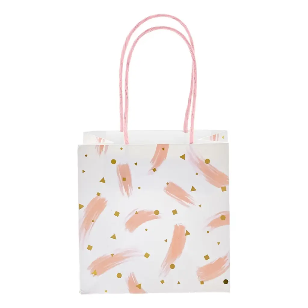 This exquisite collection of elegantly designed and high-quality pink gift bags serves as quick and effortless packaging solutions for any event or celebration. These pink-colored bags boast versatility and charm and are adorned with three distinctive designs, each featuring eye-catching gold foil accents. They are the perfect choice for presenting party favors, gifts, or even merchandise with style and panache. Crafted with precision and made from top-quality materials, these mini gift bags are attractive and highly durable. They are designed to hold various small items securely, ensuring your carefully selected tokens of appreciation are well-protected and elegantly presented. The bags' compact size and charming appearance make them suitable for various occasions, from intimate gatherings to grand soirees. One of the most appealing aspects of these gift bags is their versatile pink color palette, enabling them to blend with different themes and settings seamlessly. Including three distinct designs further enhance their adaptability, offering various options for various preferences and styles. Each design showcases shimmering gold foil accents, adding a touch of sophistication and glamour to the overall aesthetic. These small bags for gifts are perfect for many events, from birthdays, bridal showers, and baby showers to corporate gatherings, fundraisers, and holiday celebrations. They can also be utilized as chic merchandise bags for boutiques and gift shops. The quick and easy packaging solution these bags offer allows for a streamlined and hassle-free gifting process, allowing you to focus on the joy and excitement of your special occasion..
