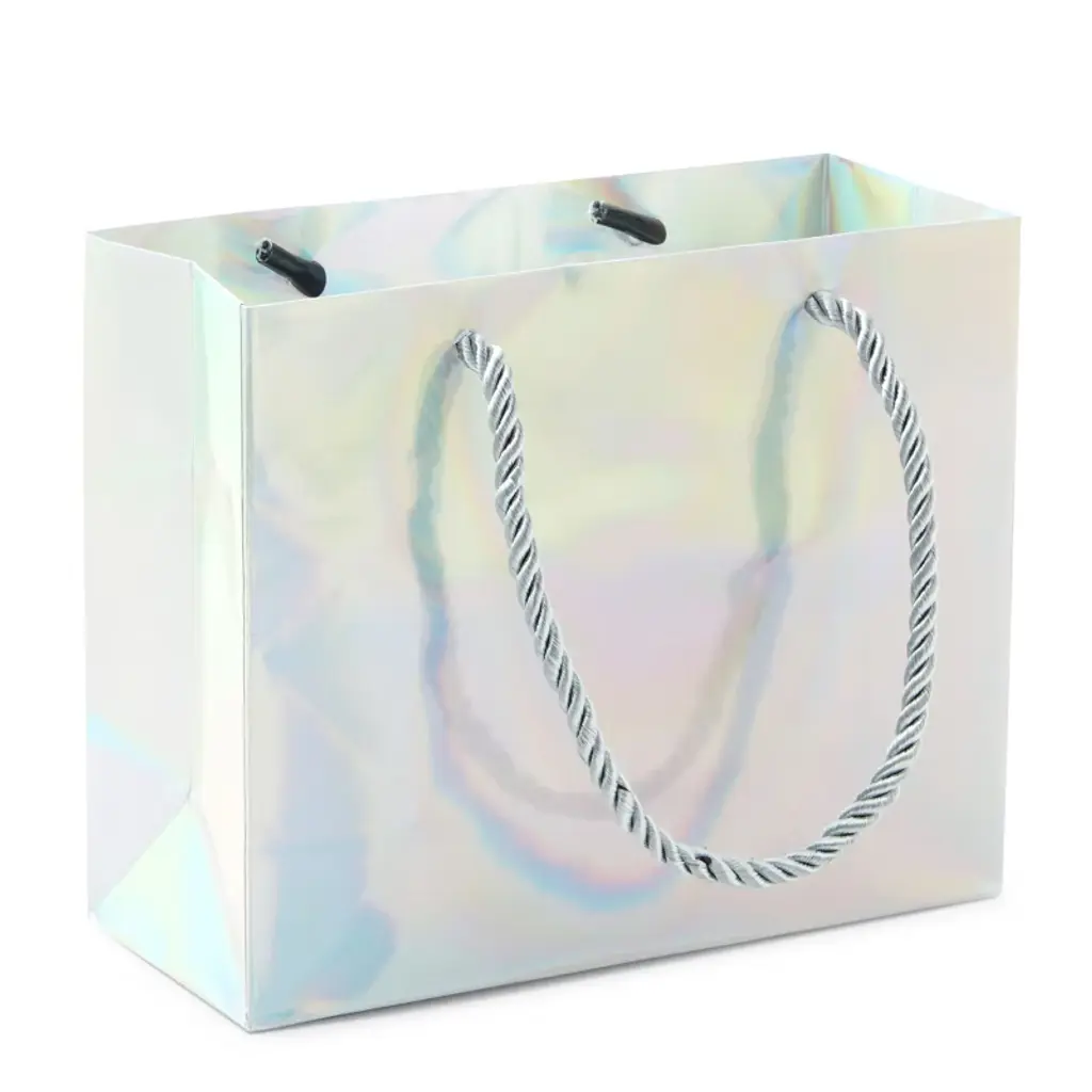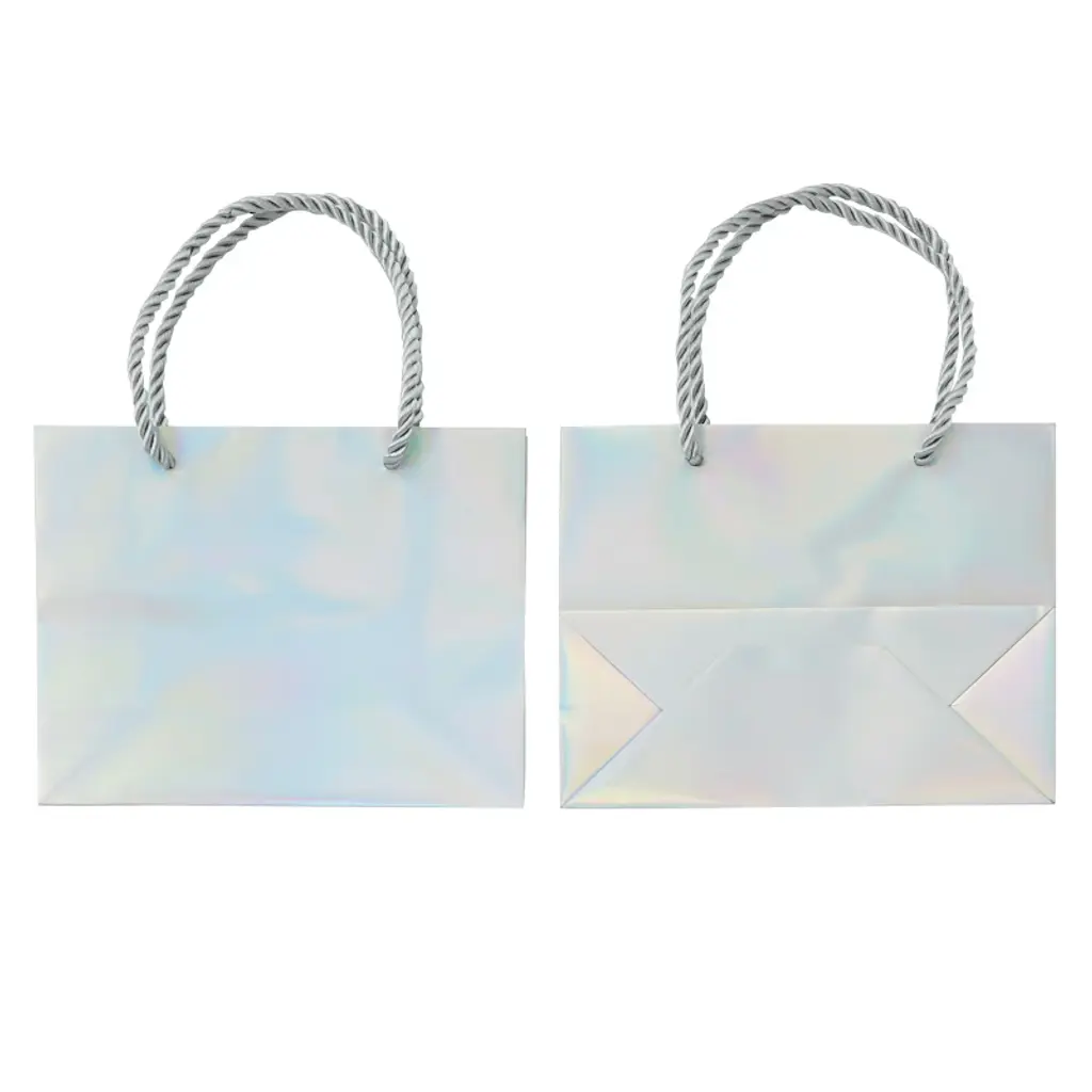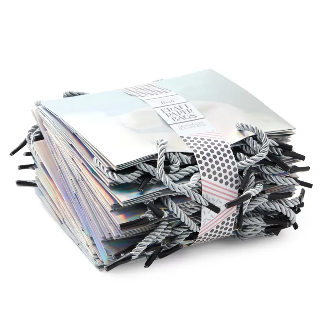 Our 24 silver gift bags offer a quick and easy packaging solution for special occasions, including an upcoming baby shower, wedding reception, or birthday party. You can decorate the mini gift bags with handles with custom name tags, stickers, or photos (not included). Each of the small paper bags with handles measures 6 x 5 x 2.5 inches, ideally sized to hold small gifts, prizes, jewelry, and merchandise (not included).