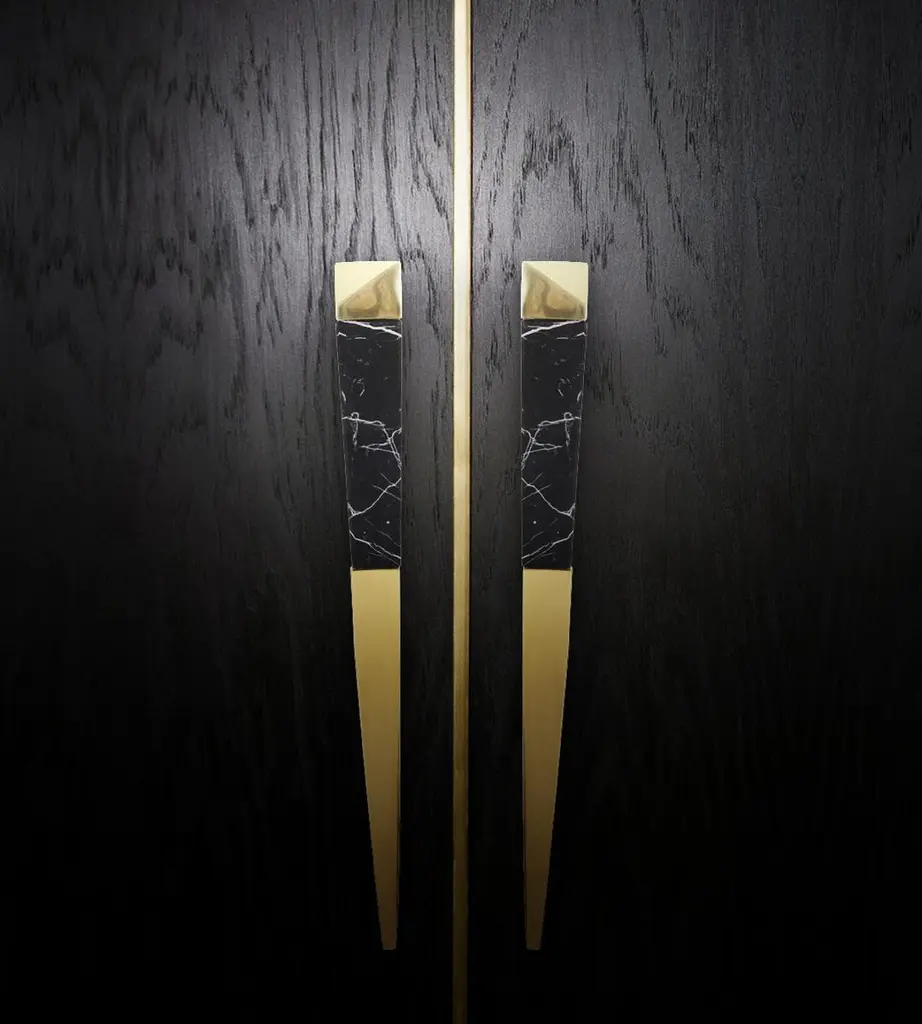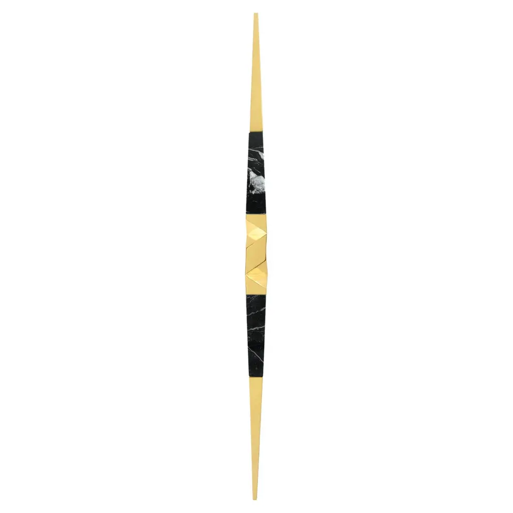 The imponent Spear Door Pull was inspired by the Celtic sun god that possessed the "Invincible Spear". The legend tells that the Spear was blazingly hot, and it became hotter the longer it was used. It was stored in a vat of water at night to keep it from catching fire and scorching the earth. Honoring Celtic culture and myths, PullCast's designers projected this mythical Big-Size Door Pull made with Polished Brass and Nero Marquina pull to bring a powerful statement into the main doors.