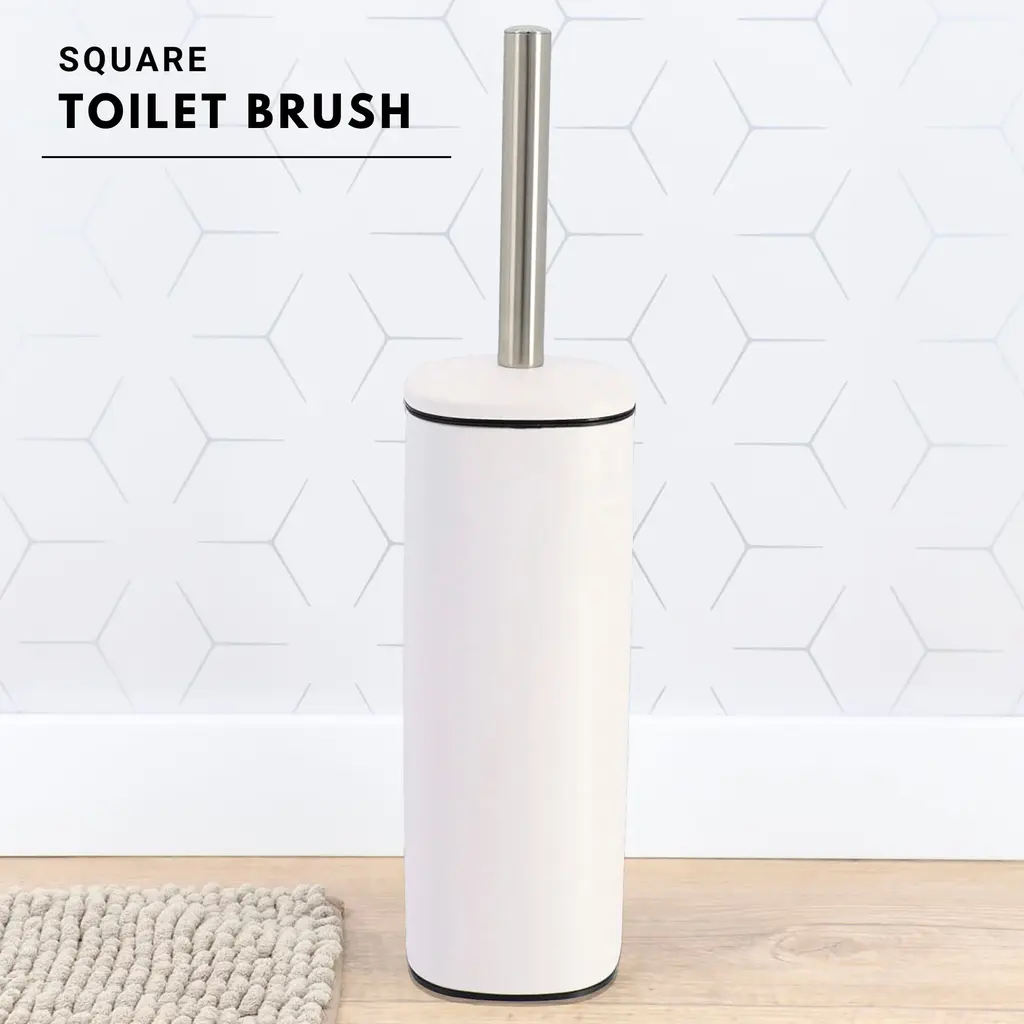 Square Metal Toilet Brush And Holder With Sturdy Handle Splash Guard - 3.12"l X 3.12"w X 15.8"h - White