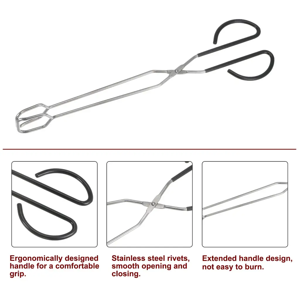 The scissors pliers are made of (18/0)430 stainless steel material which is heat-resistant and durable for direct contact with food. The fireplace tongs are very long, which can effectively prevent the high temperature from burning your hands when cooking.The end jaws of the grill tongs are textured, which can easily securely clamp firewood or charcoal to the fire stove or fireplace, and can also directly pick up food, such as bread and grilled meat, to the plate for your barbecue or other situations.The stainless steel tongs can be applied to various occasions such as indoor fireplaces, wood-burning stoves, boilers, barbecues, etc., easy to grab and turn all kinds of meat, fish, bread, eggs, and charcoal, etc.
