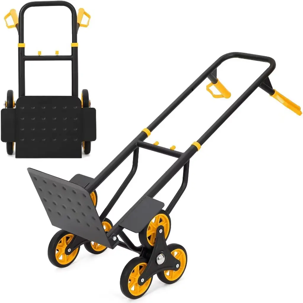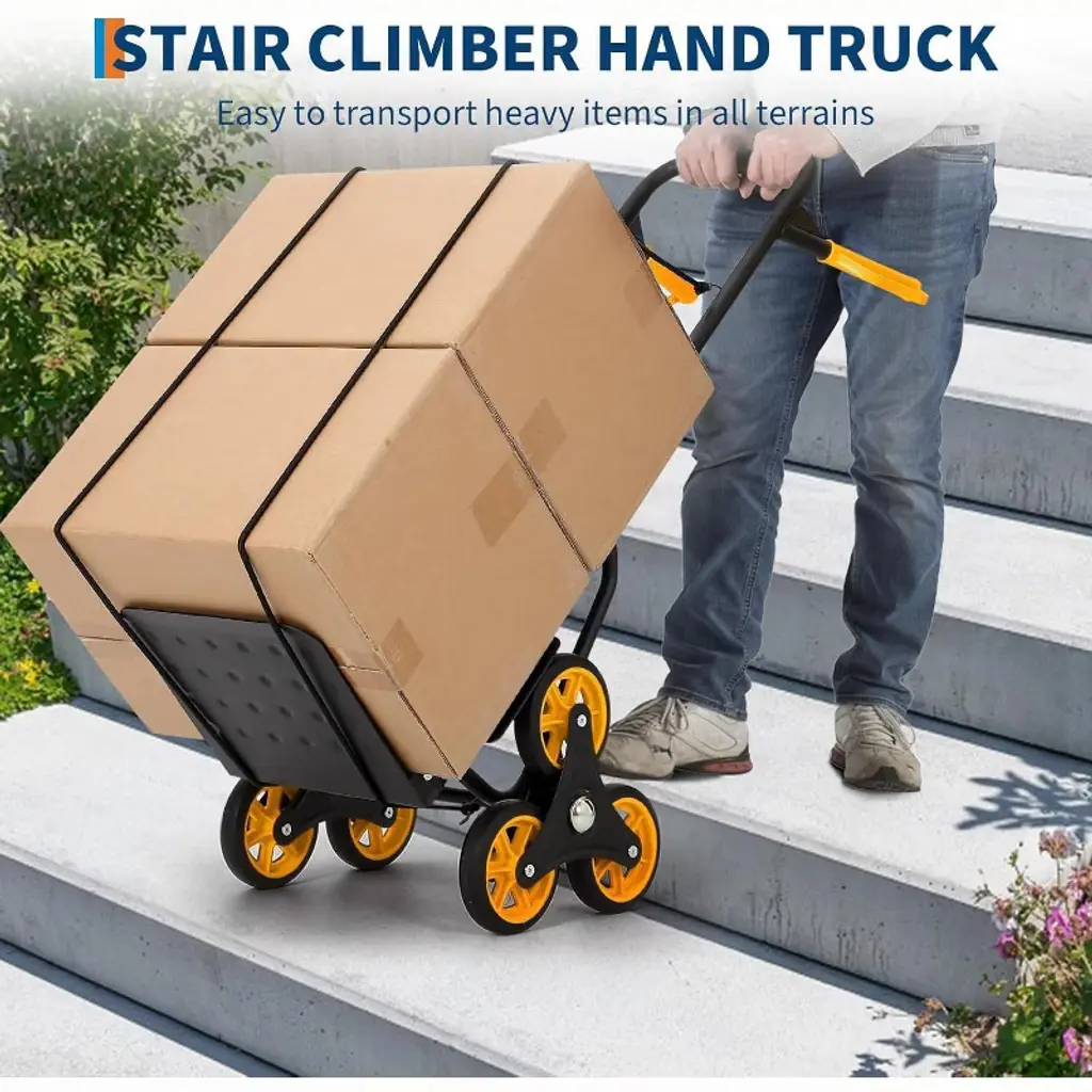 Stair Climbing Cart - 330lb Heavy Duty Hand Truck With 6 Wheels, Telescoping Handle & 2 Elastic Ropes - Home, Office, Warehouse, Shopping Use, Yellow