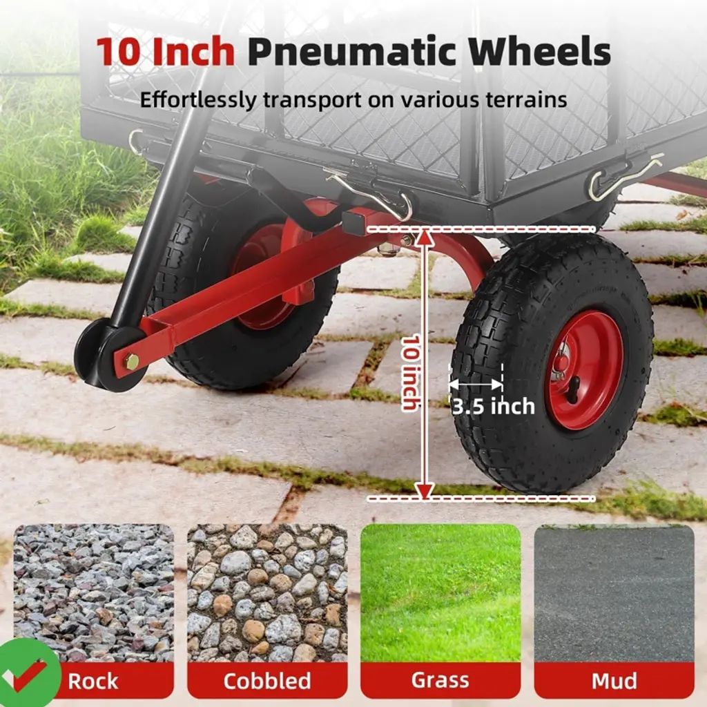 Steel Garden Dump Cart 880LBS/1400LBS, Heavy Duty Meatl Utility Wagon with Removable Sides & 180¡ã Rotating Handle, Utility Dump Cart with 10-Inch All Terrain Wheels for Yard Lawn and Farm.