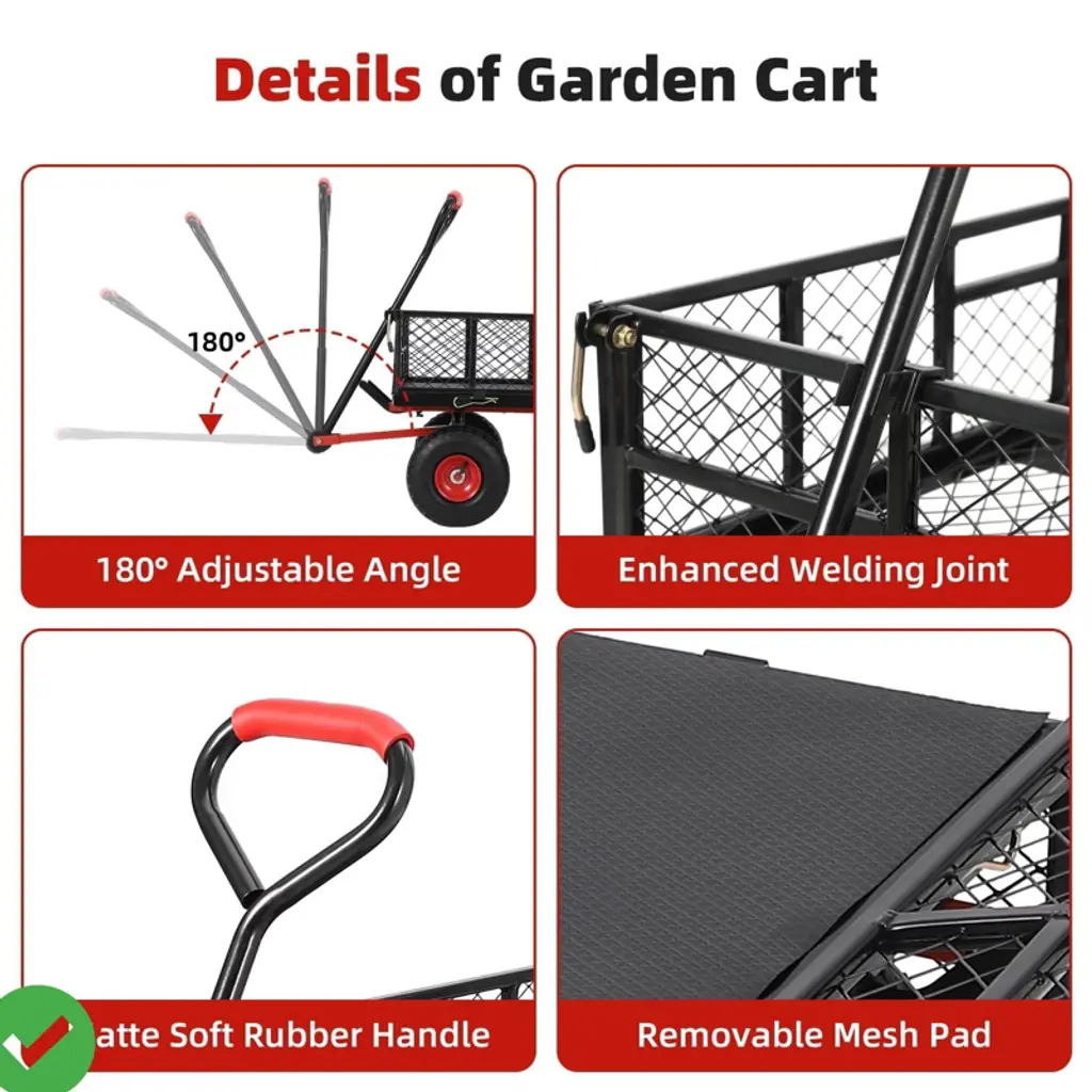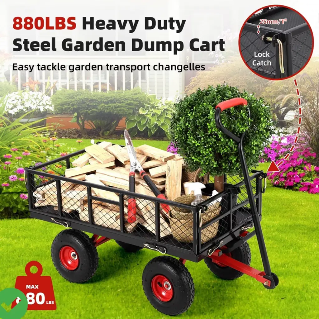 Steel Garden Cart, 880lbs/1400lbs Heavy Duty Garden Dump Cart, Meatl Utility Wagon With Removable Sides & 180¡ã Rotating Handle