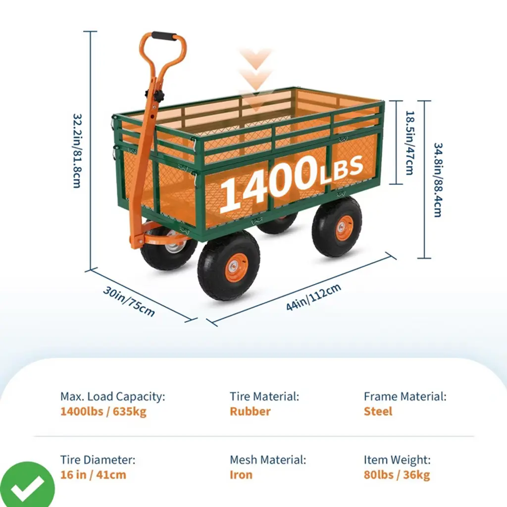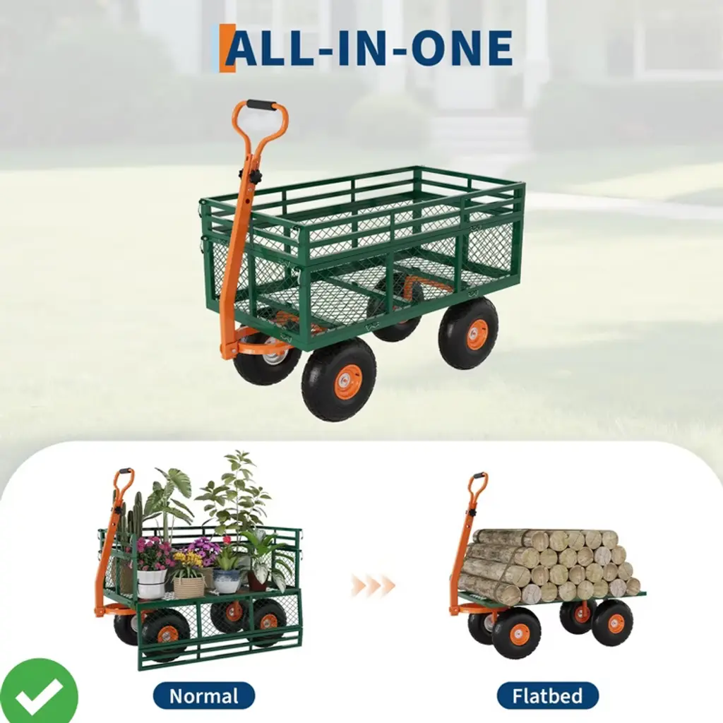 Steel Garden Cart With 10" Wheels 1400 Lbs Utility Wagon Cart With Removable Sides & 180¡ã Rotating Handle For Garden