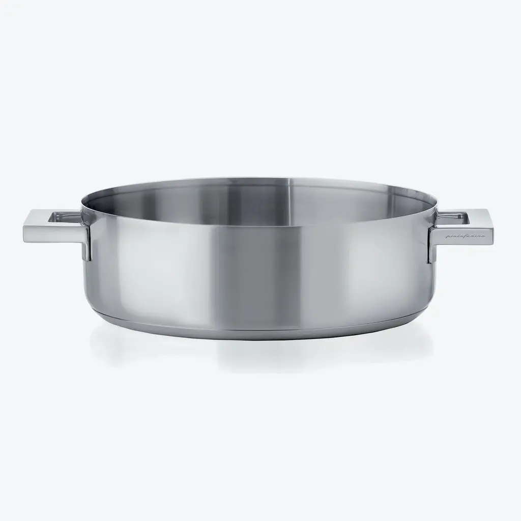 Made in collaboration between Mepra and Pininfarina, the Stile Two-Handle Saute Pan features clean lines crafted in durable stainless steel. Striking the perfect balance between form and function, the Stile Cookware Collection yields a refined line of pots and pans that are the perfect kitchen companion for lovers of traditional Italian design. The contrast between the shiny finish of the handles and the satin-finished exterior gives the Stile collection an unmistakable look. Created in 1947, Mepra is a family-owned and operated company with a worldwide presence in flatware, cookware, and stainless-steel products. Today, Mepra flatware and kitchenware appear on the tables of the most prestigious hotels, award-winning restaurants, and artisanal-centered homes. Bring the magic of three generations worth of Italian traditions, designs, and lifestyles into your kitchen and dining room today.