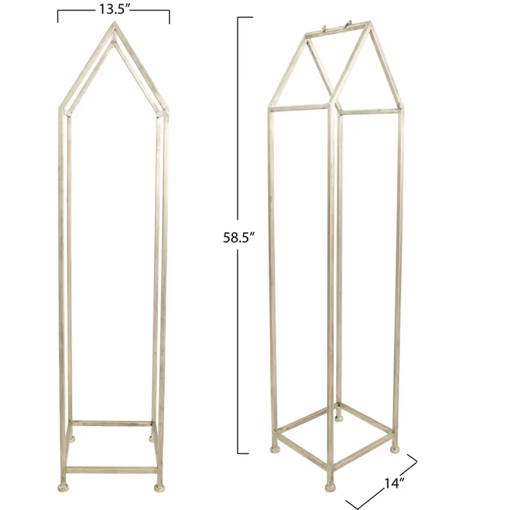 This metal house log holder keeps the fireplace stocked and ready. It features a house-shaped frame that creates a cozy and inviting atmosphere in the living room. The metal construction is sturdy and durable, with a nickel finish that resists rust and corrosion. The log holder can store logs, kindling, or firewood of various sizes and shapes, keeping them within easy reach of the fireplace. The log holder measures 13 inches in length, 12.5 inches in width, and 55.75 inches in height, making it suitable for any space. Whether it is for enjoying a warm fire or adding a rustic touch to the home décor, this metal house log holder is perfect.