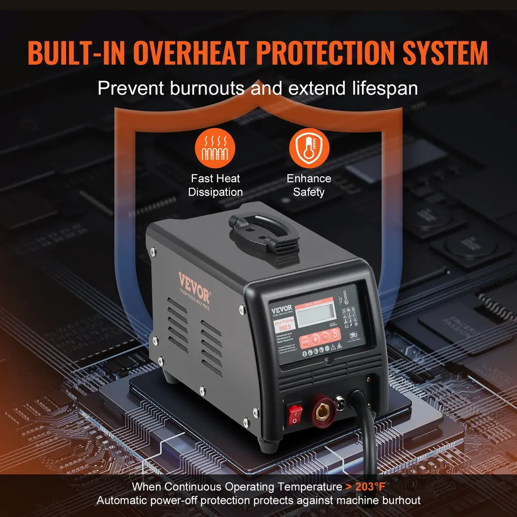 Professional Dent Removal: VEVOR Stud Welder Dent Puller offers a fast and efficient solution for removing dents from steel car body panels, all while providing precise dent pulling and controlled force for a professional-grade dent repair every time. Easy to Operate: Equipped with 9 default welding modes to adapt to different welding studs, easy to operate control panel. Ideal for skilled mechanics, car enthusiasts even DIYers looking to tackle dent repairs at home or in their workshops with ease and confidence. Dual Welding Modes: In manual mode, you can finely tune the weld spots for precision work on complex and intricate dents; while the automatic mode delivers exceptional efficiency when handling large dents, completing the welding effortlessly with a simple contact to the panel. Comprehensive Accessories: VEVOR welding dent puller comes with a complete set of accessories stored in a toolbox, enabling you to tackle all common dent problem. Its compact design and convenient handle make it highly portable for effortless use anywhere you need it. Versatile Application: Contains 5 different types of studs, suitable for various dent sizes and types, VEVOR complete dent puller kit handles everything from minor dings to larger dents on flat or curved automotive body panels. Package Content 1 x Organizer Box 1 x Slide Hammer 10 x Wiggle Wires 1 x Stud Collet 1 x Carbon Rod Collet 1 x Washer Collet 2 x Carbon Rods 1 x Wrench 1 x Puller Hook 1 x Puller Claw 10 x Triangle Washers 10 x Pulling Tabs 20 x Round Washers 1 x Suction Cup 1 x Suction Cup Nut 1 x User Manual