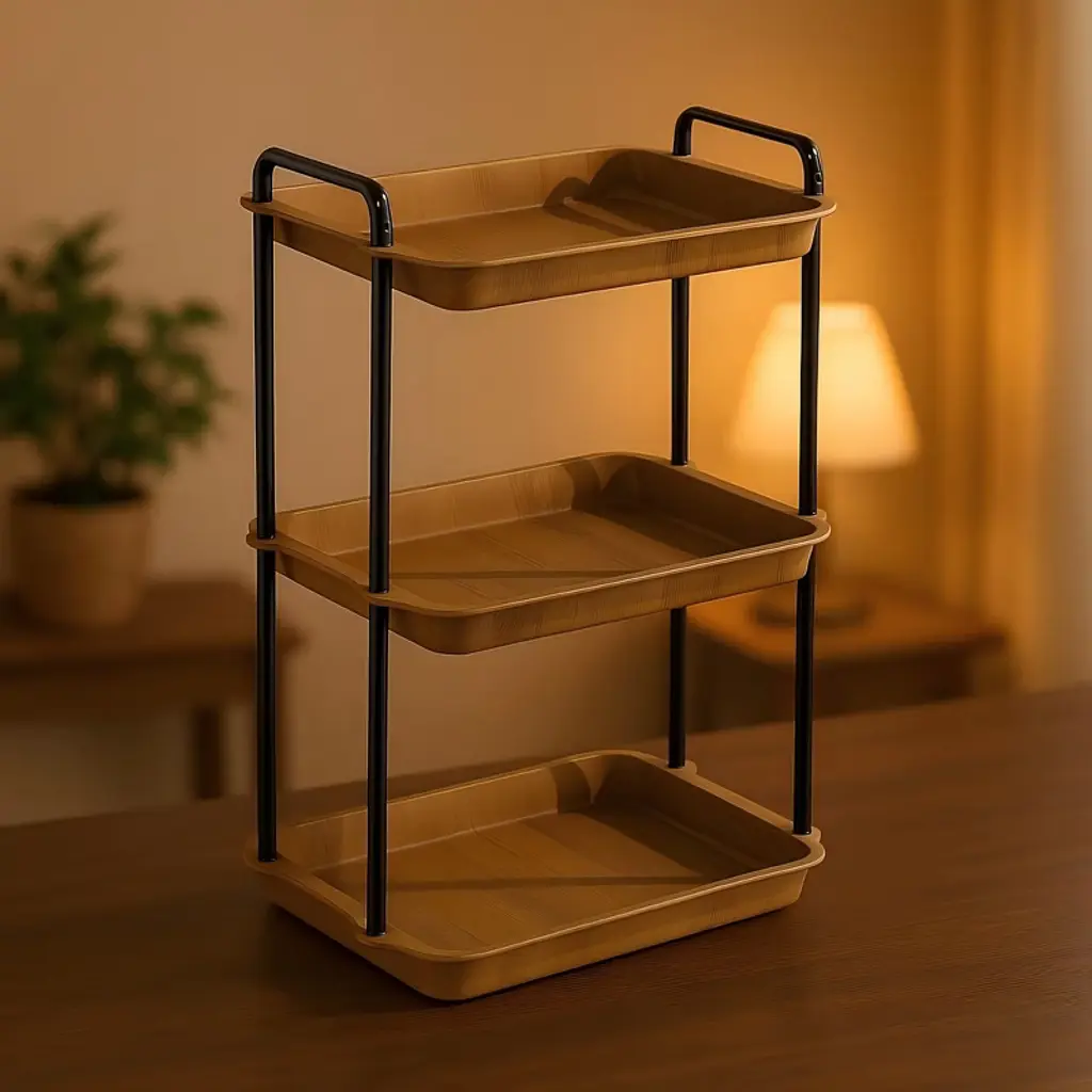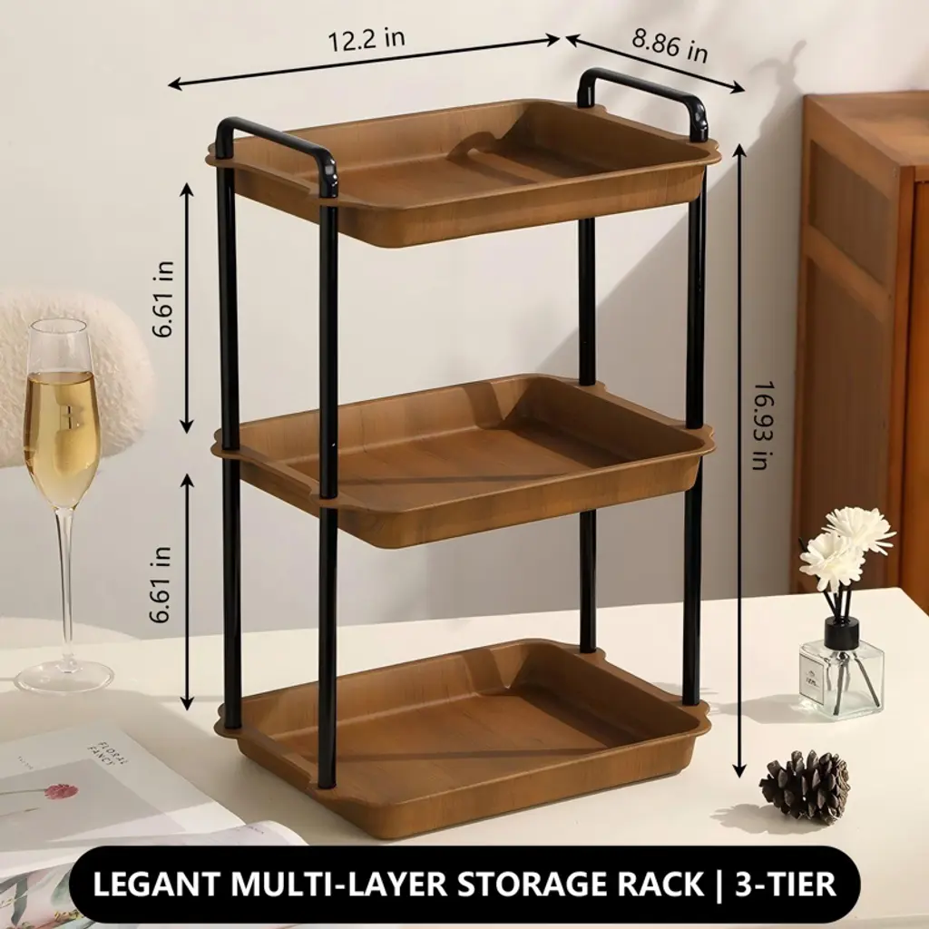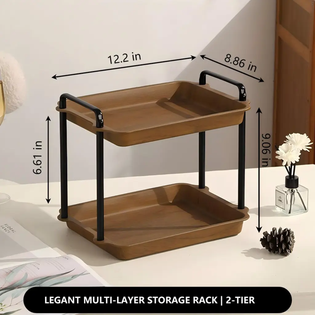 Maximize your space with this carbon steel desktop organizer rack, available in 2-tier and 3-tier options. Made with durable carbon steel and a sleek open design, it provides easy access to your items from any angle. Perfect for organizing toiletries, cosmetics, spices, office supplies, or decorative items, this storage shelf combines strength and style. Its elevated design with generous spacing allows you to store taller items without clutter, making it a versatile solution for your kitchen, bathroom, or office. Features Carbon steel construction for durability 2-tier and 3-tier options available Open design for easy access Ample spacing for taller items Suitable for kitchen, bathroom, or office Specifications 2-Tier Shelf Dimensions: 12.2" L × 8.9" W × 9.1" H Tray Height Clearance: 6.6" 3-Tier Shelf Dimensions: 12.2" L × 8.9" W × 16.9" H Tray Height Clearance: 6.6" each Material: Carbon Steel Assembly: Simple, tool-free installation Usage: Countertop, desktop, or cabinet organization