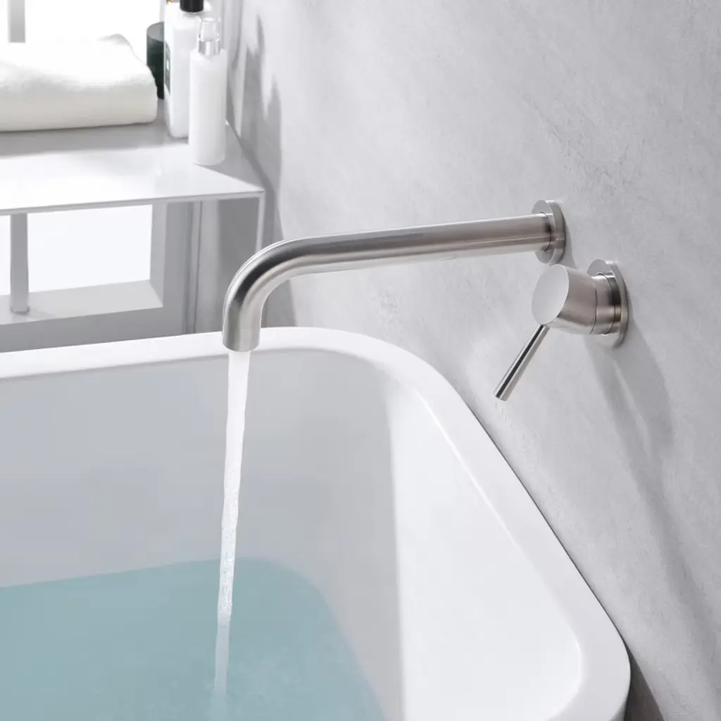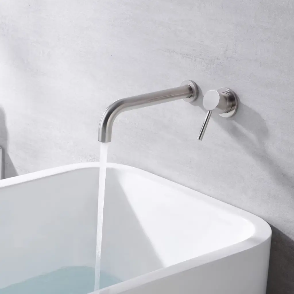 Complete the look of your bath with this SUMERAIN single handle wall mount tub filler! Paired with crisp lines and premium finish, it wins praise not only for its presentable looks but also for its lasting durability. Solid brass construction and ceramic disc cartridge provides many years of supreme performance and resists to corrode and leak. 8.66GPM spout flow rate at 60PSI, this wall mount bathtub faucet can fills up your tub in minutes. 11-11/32 Inches extra long spout reach. Single easy turn lever handle controls water flow and temperature smoothly and effortlessly. This wall mount tub filler has ICC-ES PMG certification and is compliant with standard: ASME A112.18.1/CSA B125.1-2018, plumbing supply fittings(the same standard as cUPC certification). Model: S2149NI-TAProduct Name: Wall Mount Tub FaucetMaterial: BrassFinish: Brushed NickelFlow Rate: 8.66GGPM @ 60PSI Welcome to SUMERAIN! We are dedicated to showcasing our proficiency and unwavering dedication in crafting superior faucets. Our team of talented designers and engineers exert relentless efforts to conceive groundbreaking and aesthetically pleasing faucets that flawlessly amalgamate style and practicality.From sleek and modern designs to classic and timeless styles, we offer a wide range of options to suit various preferences and interior design themes.. We believe that every customer deserves a faucet that not only performs flawlessly but also adds a touch of elegance to their space. About this item specificities 1. This wall mount tub faucet require two pre-drilled holes but are versatile for the kind of tub you desire to pair it with. The bathtub faucet is best for undrilled tubs and is great in saving space as a wall-mount installation. Single lever handle provides a combination of ease and sophistication in use and style. 2. Made of solid brass, it is one of the most durable materials in plumbing. Along with many years of supreme performance, this wall mount tub filler resists to corrode and leak.3. Spout flow rate is 8.66GPM at 60PSI, this wall mount bathtub faucet can fills up your tub very quickly, you don't need to wait a long time before a bath.4. 11-11/32 Inches extra long spout reach, perfectly matches almost all tubs. Superior premium finishing process resists abrasion and corrosion.5. Ceramic Disc Cartridge with 500,000 times cycle testing ensures durable and non-drip performance, water comes out smoothly and causes no splashing.
