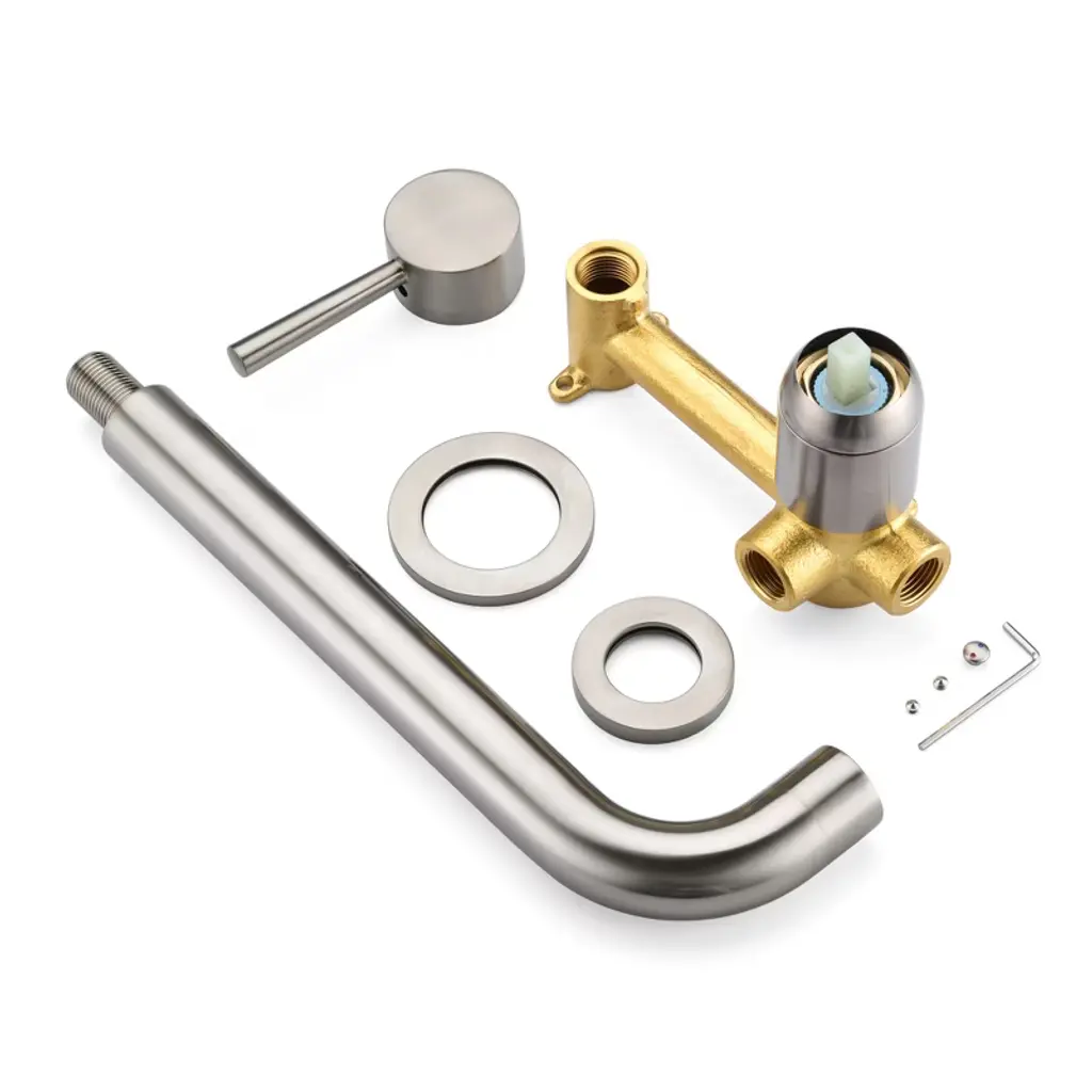 Sumerain Bathroom Brushed Nickel Wall Mount Tub Faucet Single Lever Handle Solid Brass With Valve