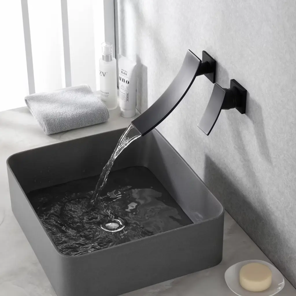 Sumerain Matte Black Wall Mount Bathroom Faucet Waterfall Single Handle With Brass Valve