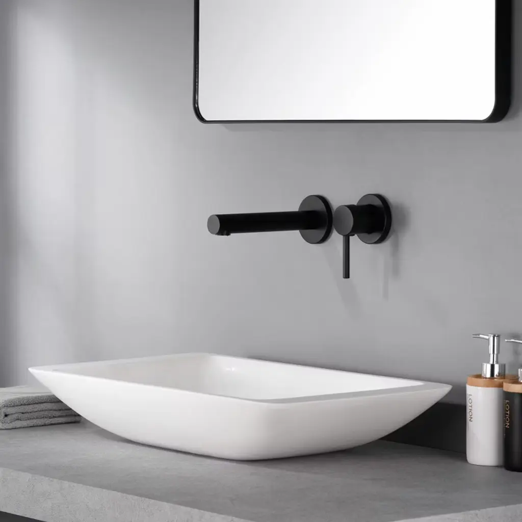 Sumerain Matte Black Wall Mount Bathroom Sink Faucet Modern Lavatory Vessel Faucet Single Handle