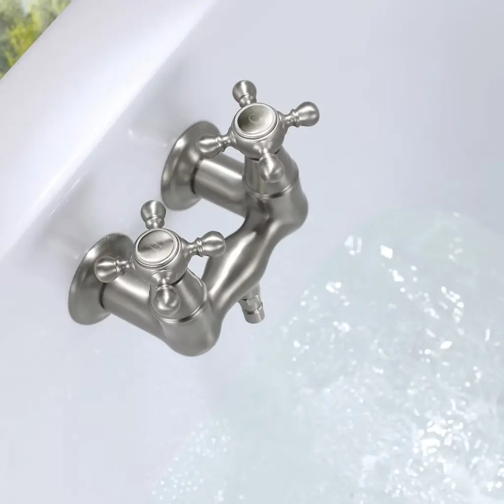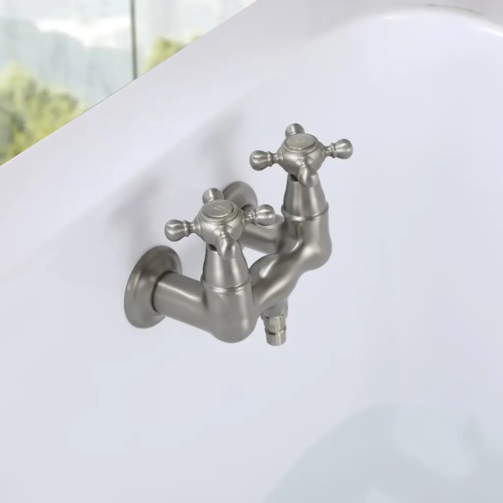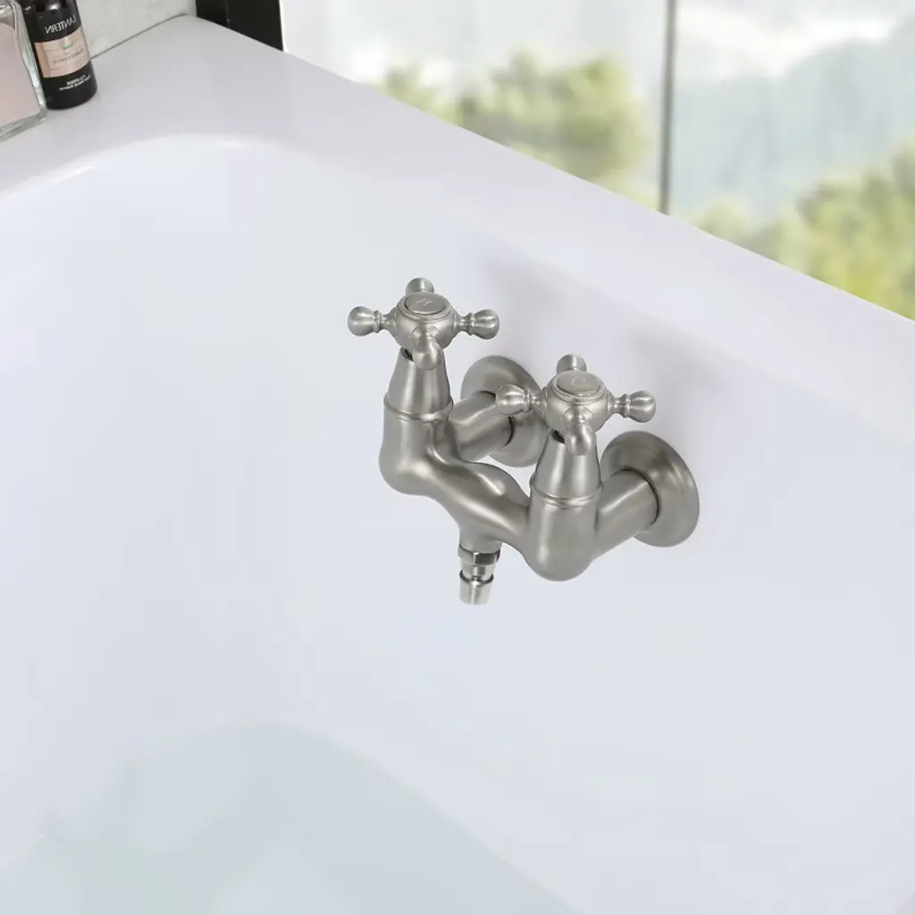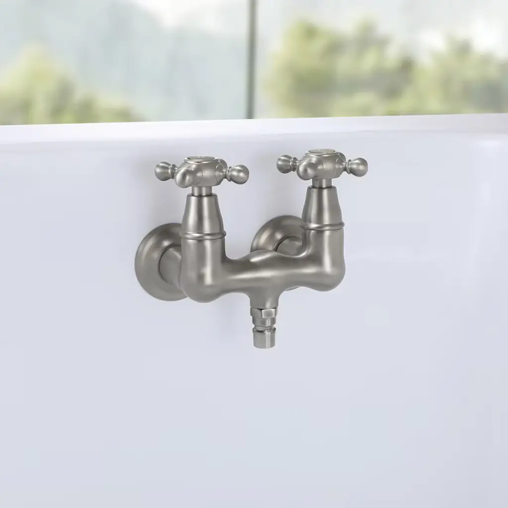 This elegant bathtub faucet is designed to bring a touch of classic charm to any bathroom decor. Its beautiful brushed nickel finish creates a warm, inviting ambiance that complements any bathtub. This tub faucet is not only stylish but also highly functional. It features a high flow rate, allowing you to quickly and easily fill your bathtub with water. The 3-3/8-inch centerset design ensures easy installation, and the durable brass construction ensures long-lasting performance. With its vintage-inspired design and superior functionality, this wall mount tub faucet is the perfect addition to any bathroom. Whether you're renovating your entire bathroom or simply looking to upgrade your current tub faucet, this product is the ideal choice. This wall mount bathtub faucet has ICC-ES PMG certification and is compliant with standard: ASME A112.18.1/CSA B125.1-2018, plumbing supply fittings(the same standard as cUPC certification). Model: S2153I-BN-TAProduct Name: Tub Filler Wall MountMaterial: BrassFinish: Brushed NickelFlow Rate: 12GGPM @ 60PSI Welcome to SUMERAIN! We are dedicated to showcasing our proficiency and unwavering dedication in crafting superior faucets. Our team of talented designers and engineers exert relentless efforts to conceive groundbreaking and aesthetically pleasing faucets that flawlessly amalgamate style and practicality.From sleek and modern designs to classic and timeless styles, we offer a wide range of options to suit various preferences and interior design themes.. We believe that every customer deserves a faucet that not only performs flawlessly but also adds a touch of elegance to their space. About this item specificities 1. Sophisticated Design: This tub faucet boasts a classic and elegant design that will elevate the look of any bathroom. 1/4 Turn ceramic disc valves.2. Durable Construction: Made with high-quality solid brass materials, this vintage tub faucet is built to last. Its corrosion-resistant brushed gold finish ensure long-lasting durability and reliable performance.3. Smooth Operation: The easy-to-use cross handles make this tub filler simple to adjust the water temperature and flow.4. Easy Installation: This wall mount tub faucet is designed for easy installation, with a standard 3-3/8 inch center-to-center spread and standard 3/4 inch IPS connections. It is not NPT standards, before ordering, please confirm if it is compatible with your tub or not. The included mounting hardware and easy-to-follow instructions make installation a breeze.5. ClaTAoot tub faucet with high flow rate of 12GPM@60PSI [45L/0.4Mpa], allowing you to quickly and easily fill your bathtub.