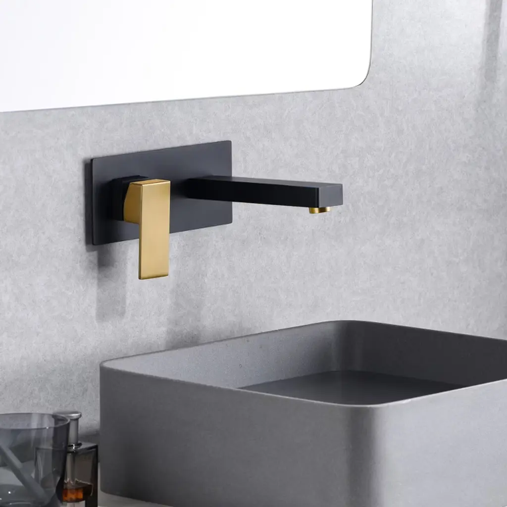 Sumerain Wall Mount Bathroom Sink Faucet Black And Gold With Left-handed Handle And Rough In Valve